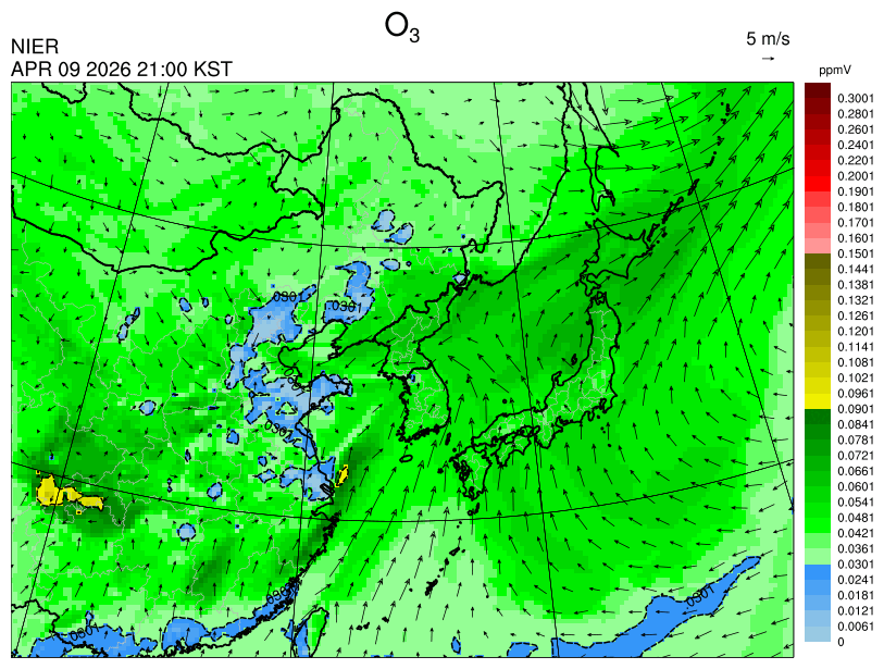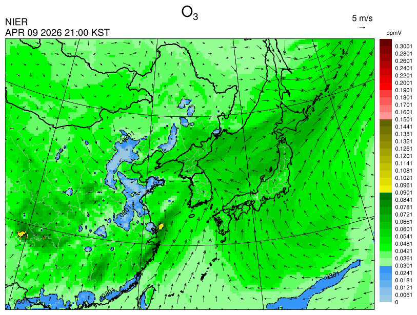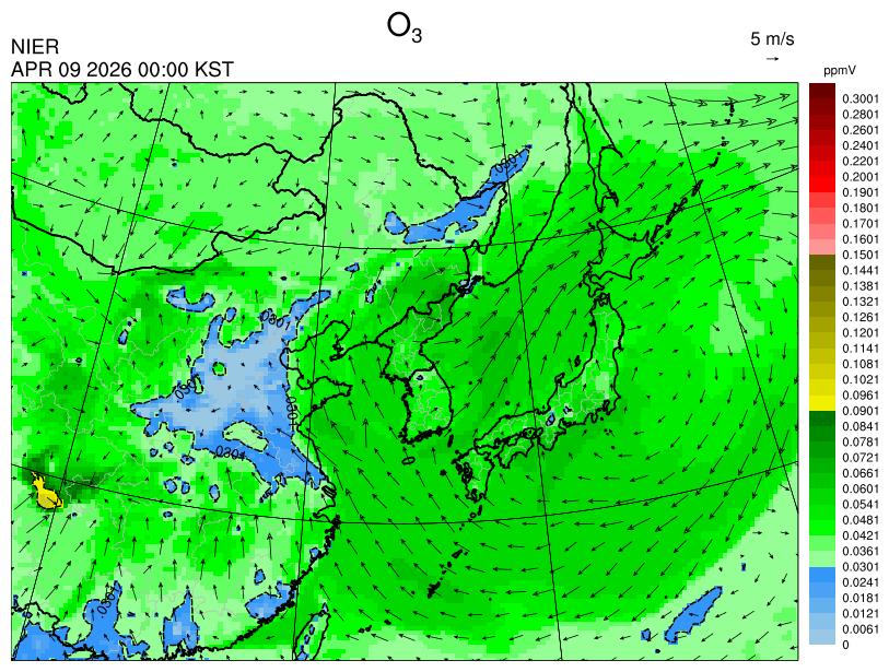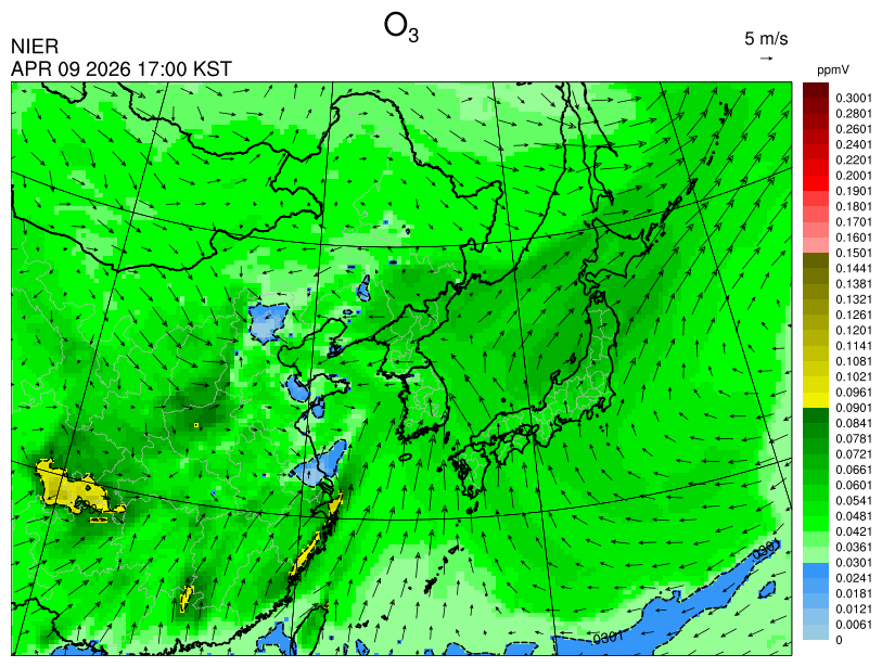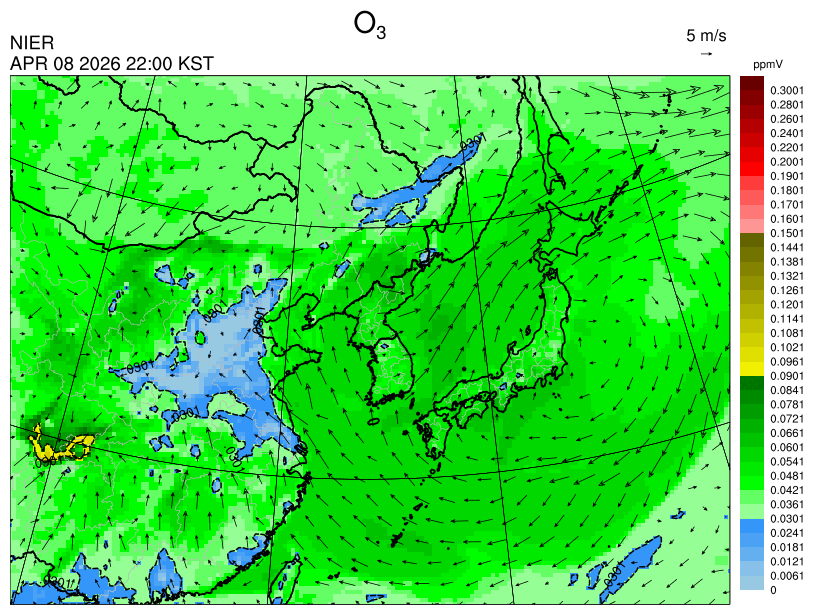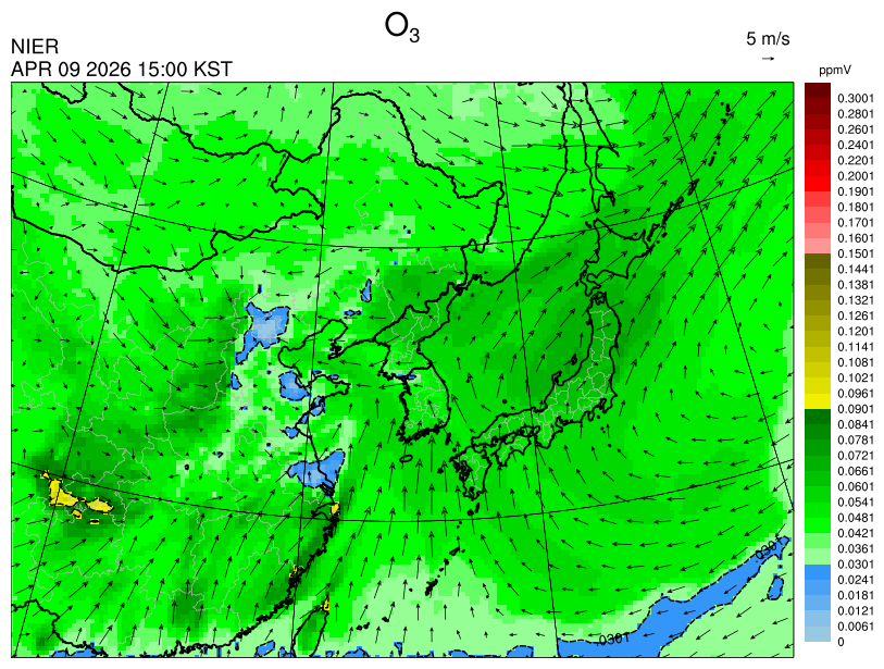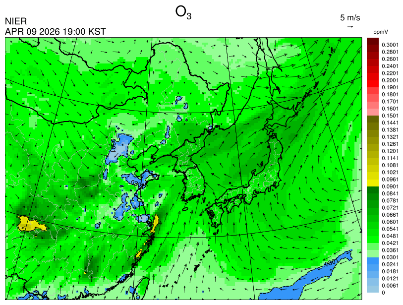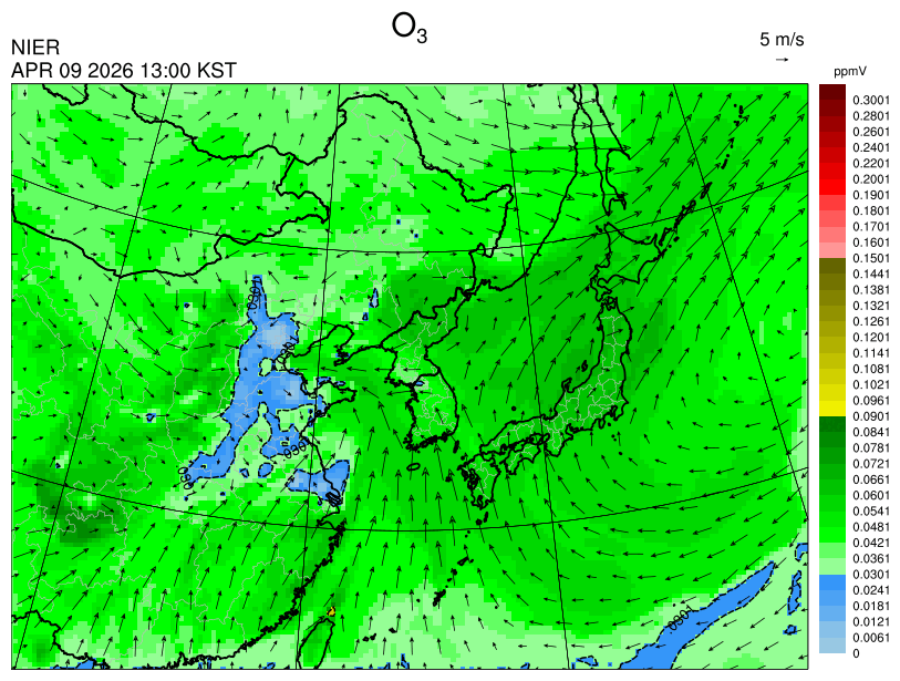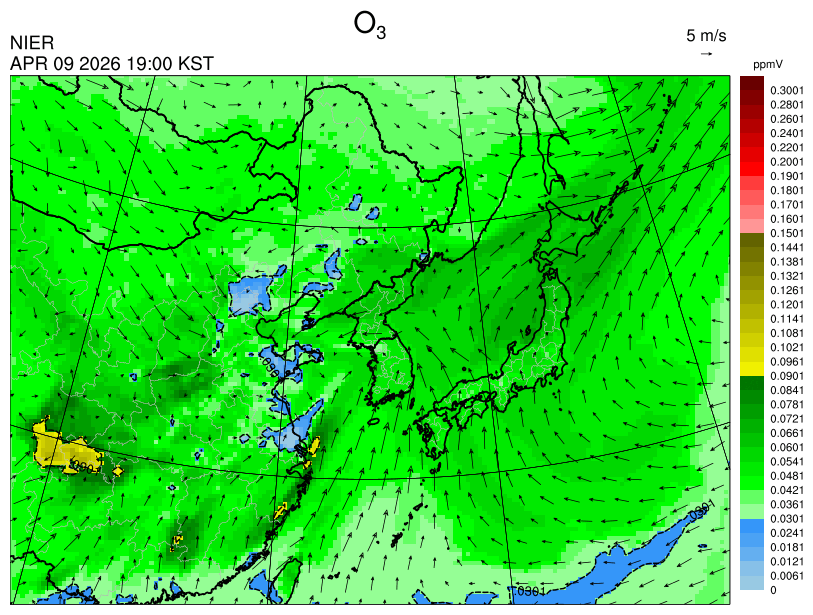 ○ 고농도 오존 생성에 유리한 조건이 형성되지 않아 농도가 높지 않을 것으로 예상됩니다.
