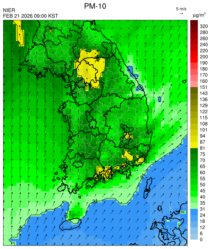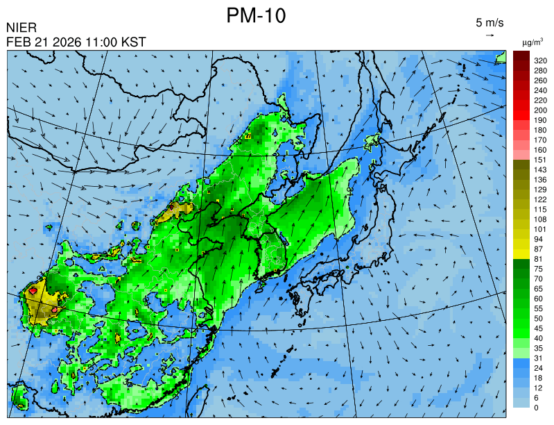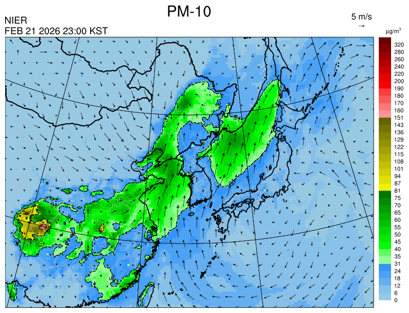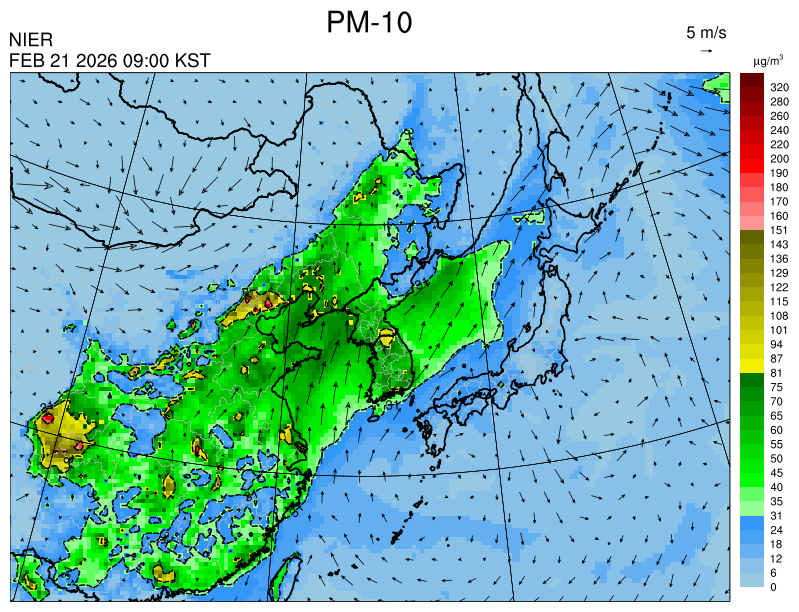 ○ 대부분 지역은 전일부터 지속된 국외 미세먼지 유입 영향과 국내·외 대기오염물질의 대기 중 화학반응을 통한 미세먼지 생성으로 농도가 높겠으나, 오후부터 청정 남풍 기류가 유입되어 남서부 지역부터 농도가 감소할 것으로 예상됩니다.