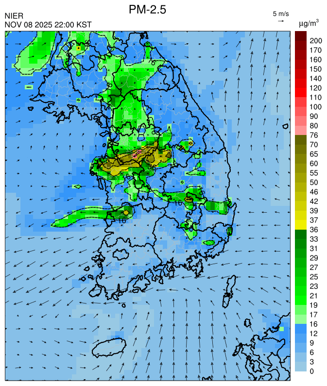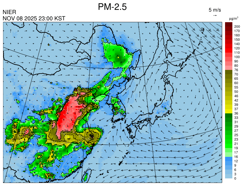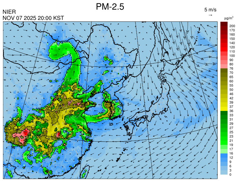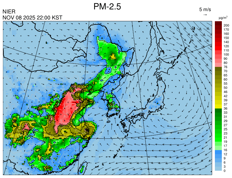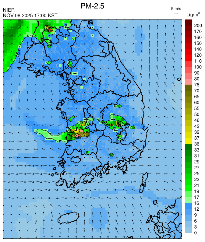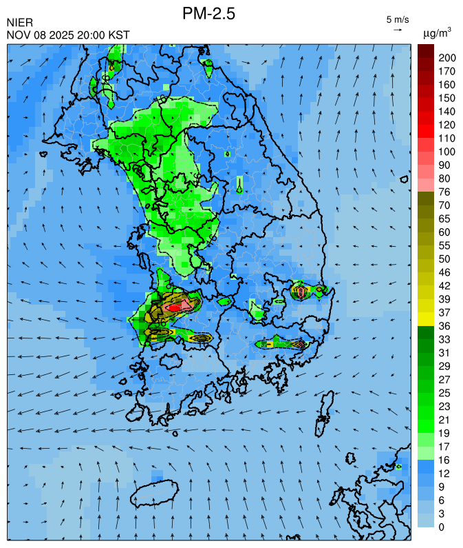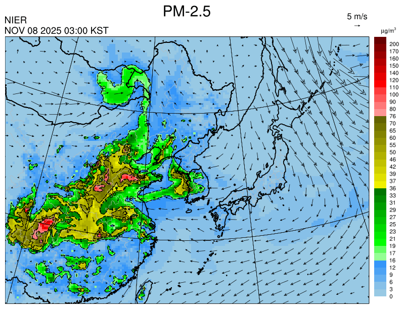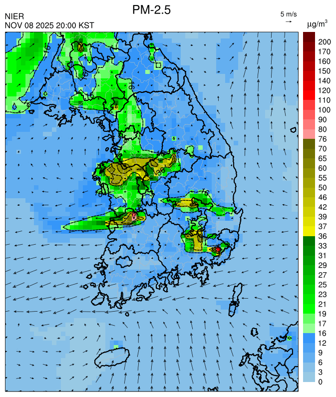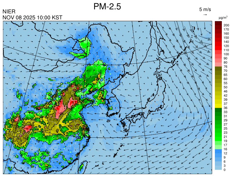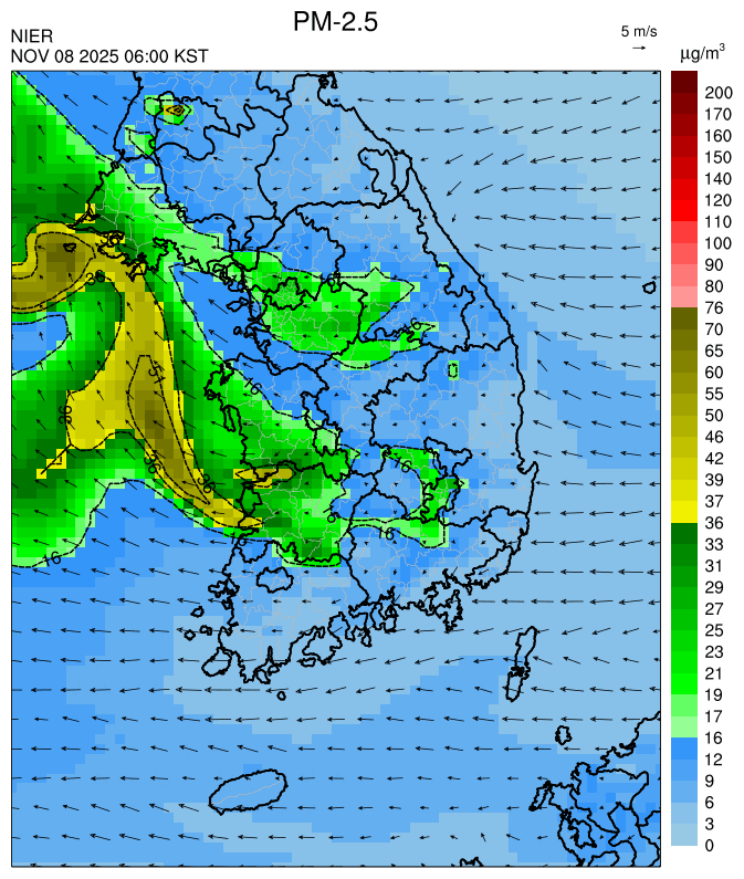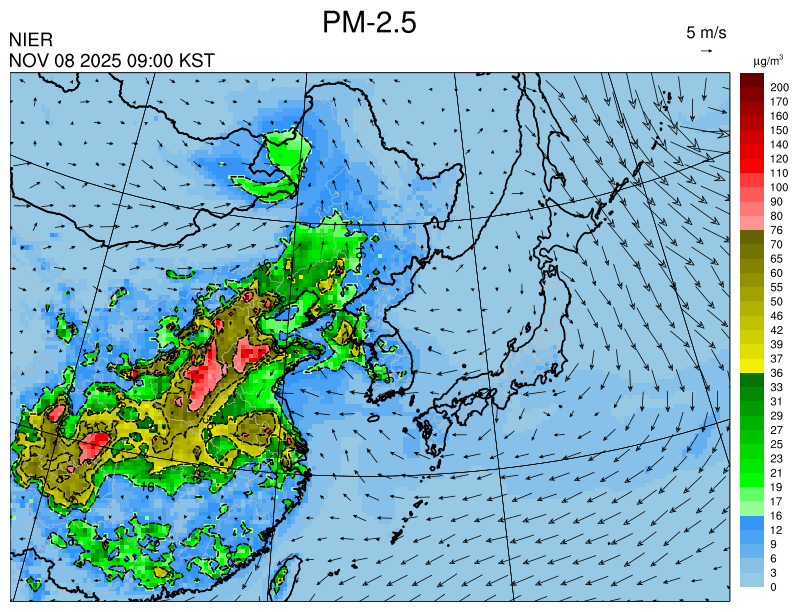 [11월 9일~12일] (9~11일) 원활한 대기 확산과 강수(9일)의 영향으로 전 권역에서 초미세먼지 농도가 '낮음' 수준일 것으로 예상됩니다. (12일) 국외 미세먼지가 유입되고 대기 정체로 국내 미세먼지가 축적되어 서울·인천 지역에서 '높음' 수준일 것으로 예상됩니다.