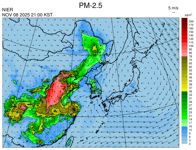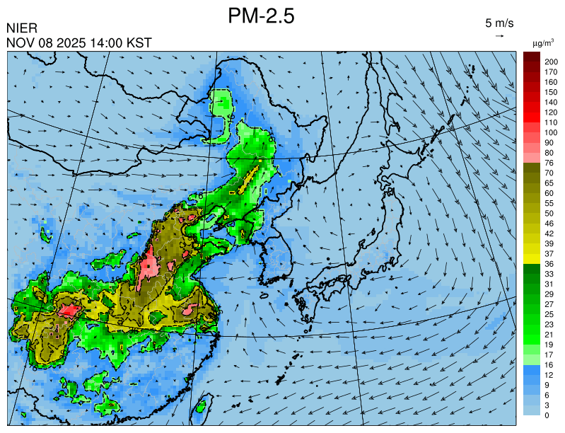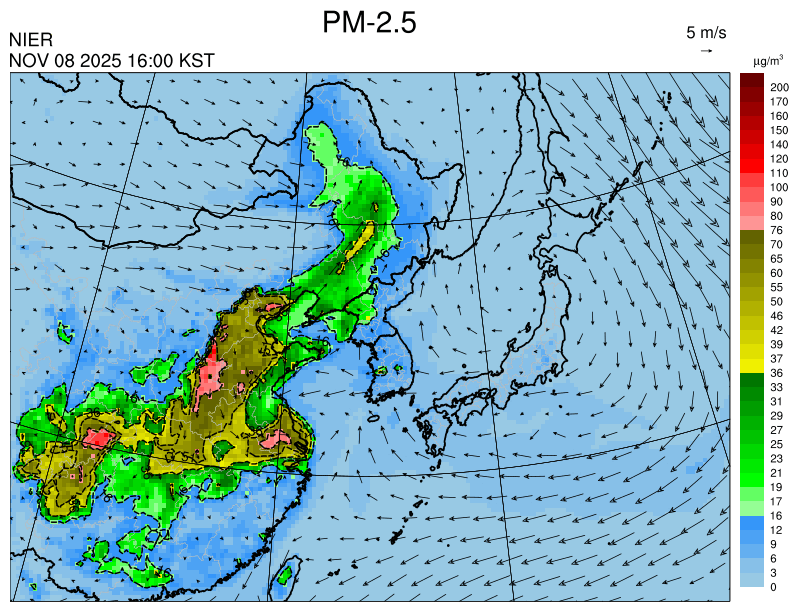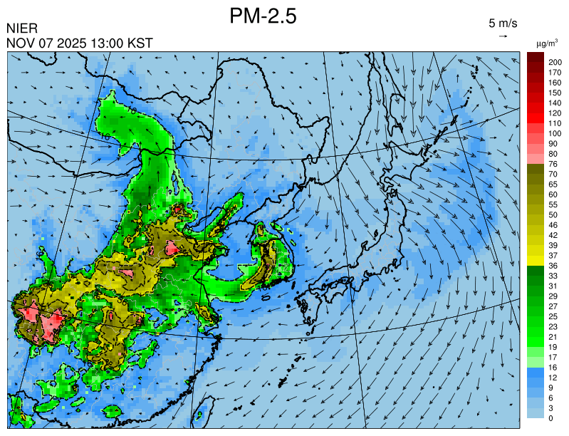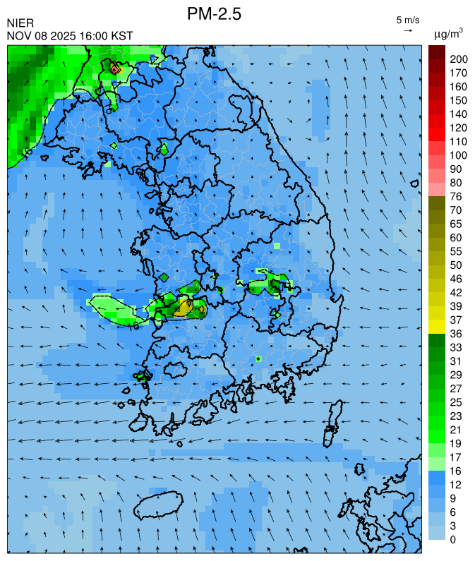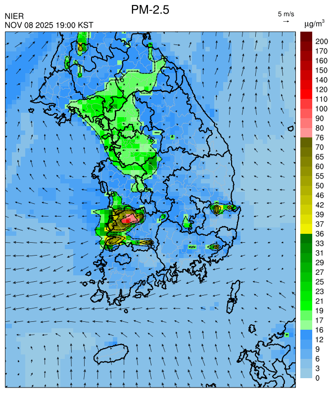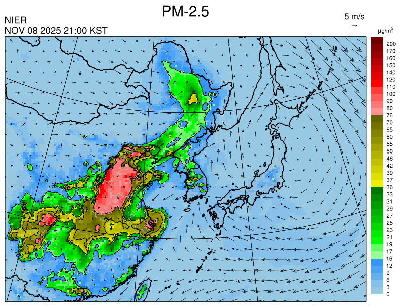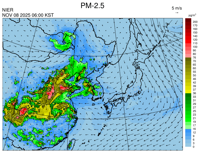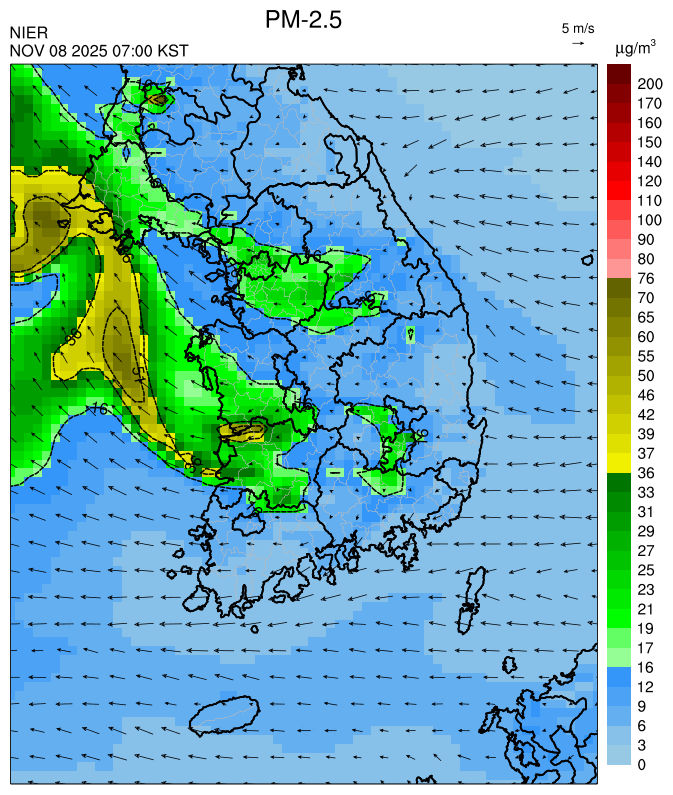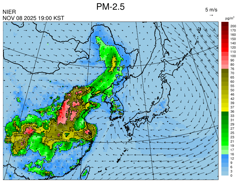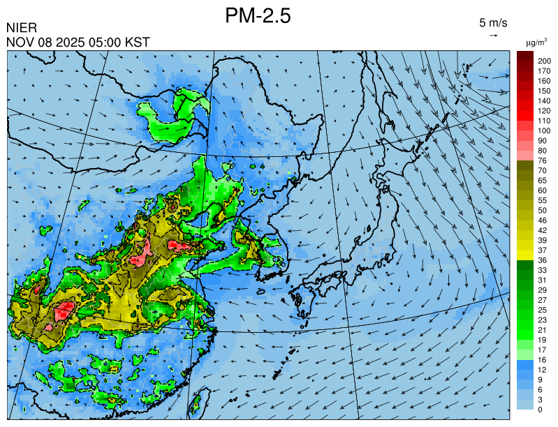 [11월 9일~12일] (9~11일) 원활한 대기 확산과 강수(9일)의 영향으로 전 권역에서 초미세먼지 농도가 '낮음' 수준일 것으로 예상됩니다. (12일) 국외 미세먼지가 유입되고 대기 정체로 국내 미세먼지가 축적되어 서울·인천 지역에서 '높음' 수준일 것으로 예상됩니다.