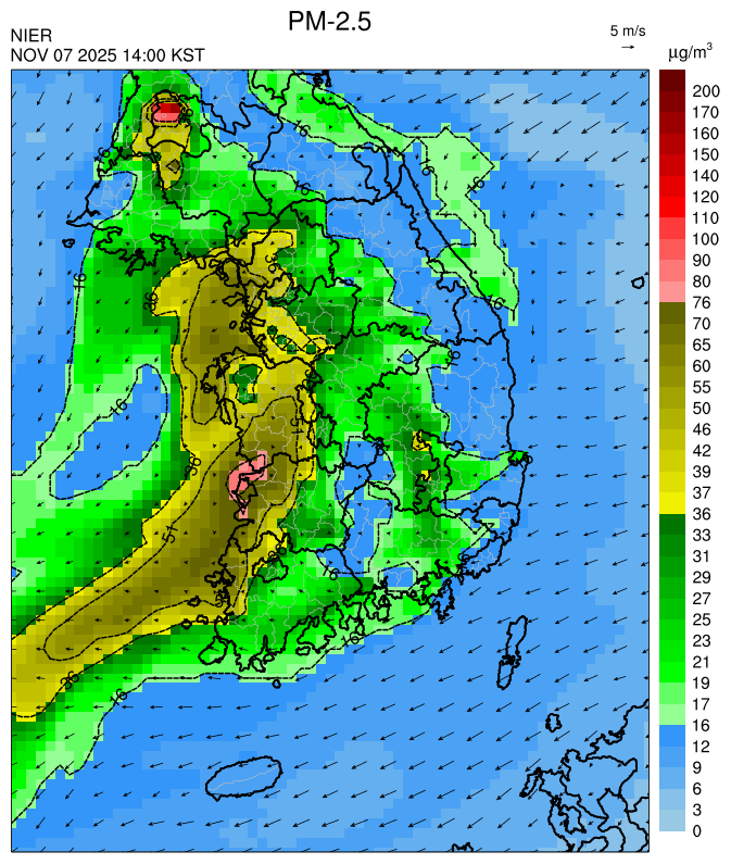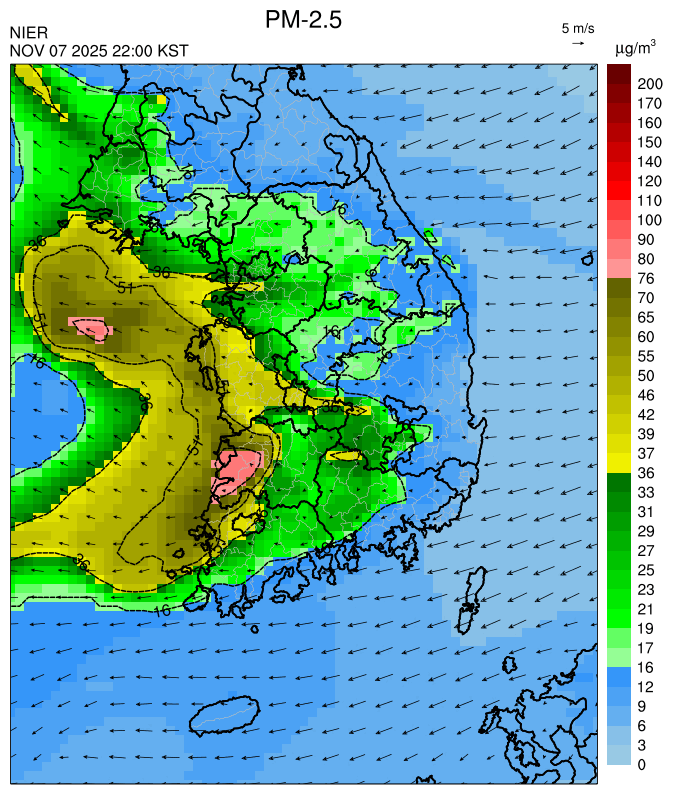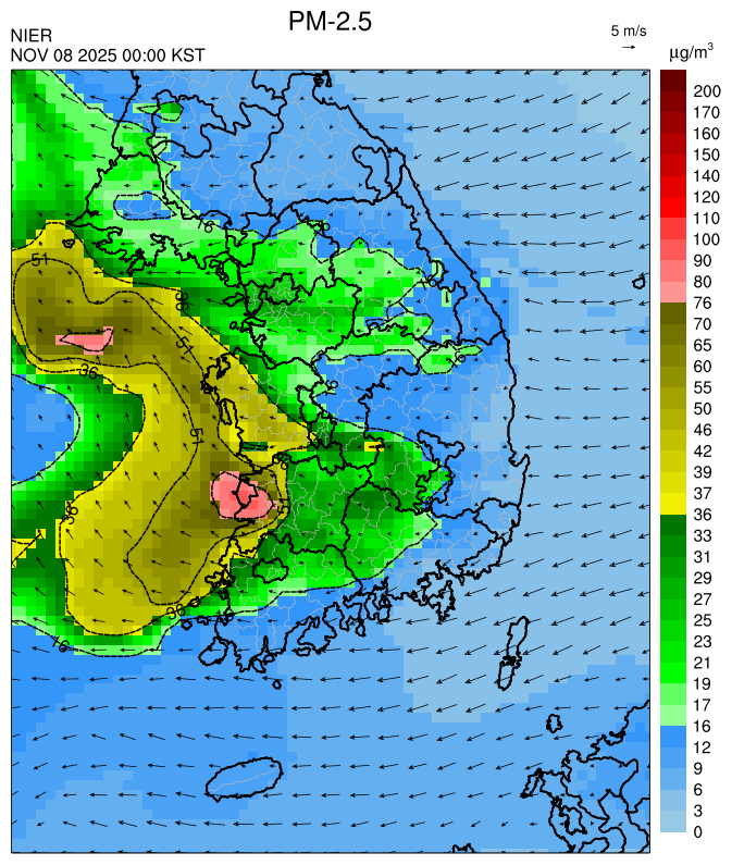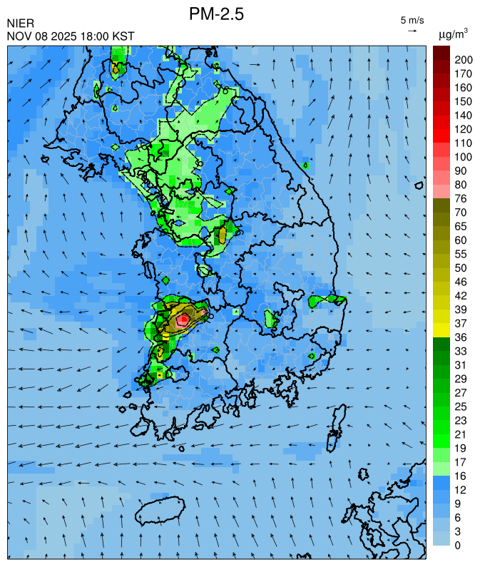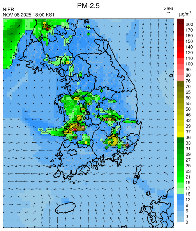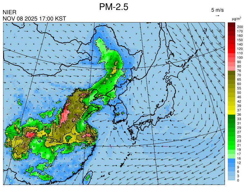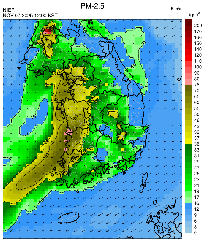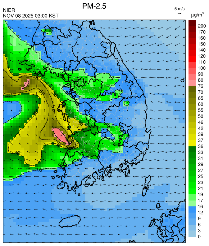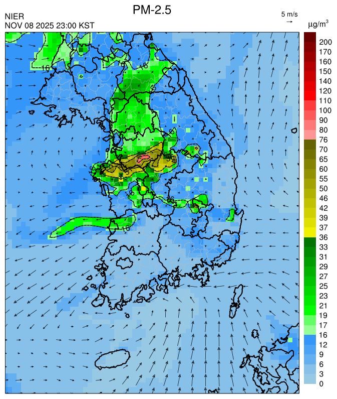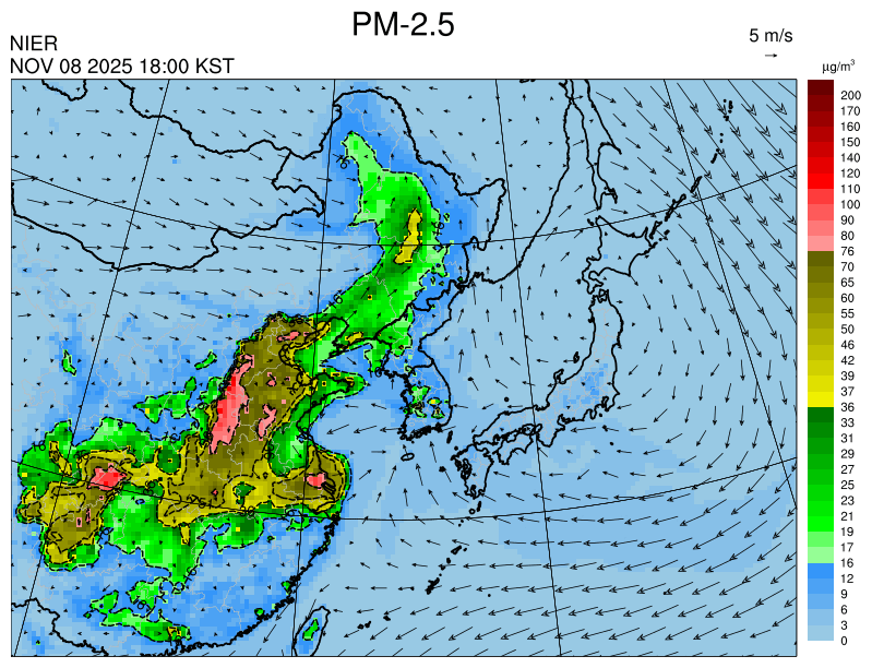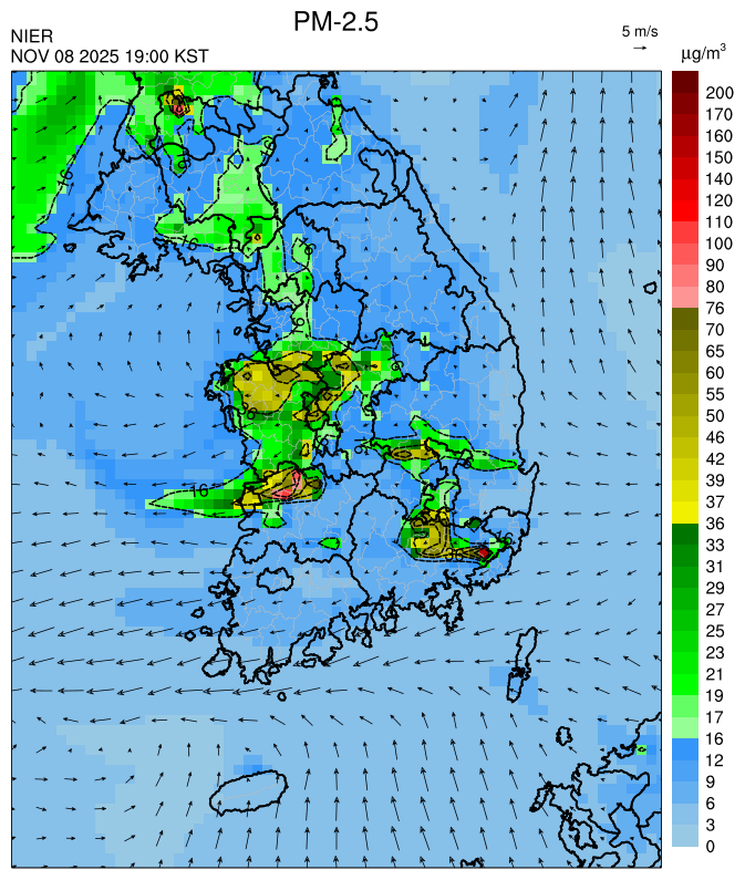 [11월 9일~12일] (9~11일) 원활한 대기 확산과 강수(9일)의 영향으로 전 권역에서 초미세먼지 농도가 '낮음' 수준일 것으로 예상됩니다. (12일) 국외 미세먼지가 유입되고 대기 정체로 국내 미세먼지가 축적되어 서울·인천 지역에서 '높음' 수준일 것으로 예상됩니다.