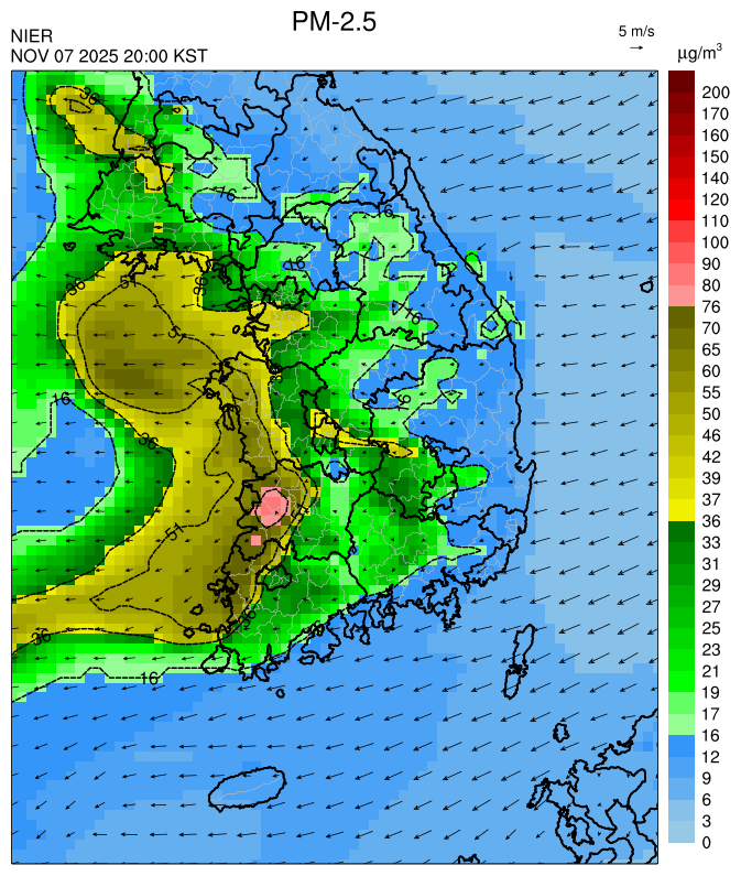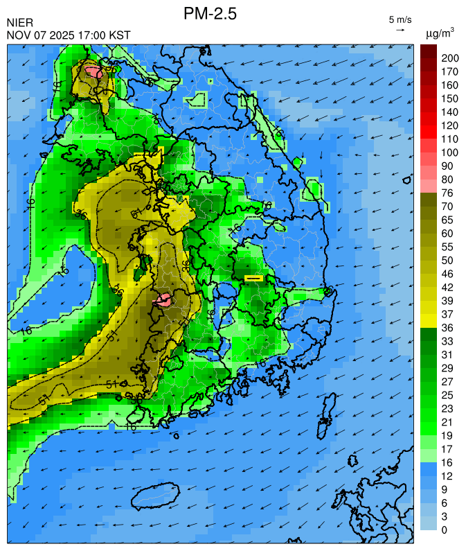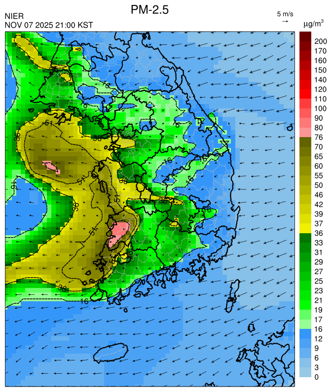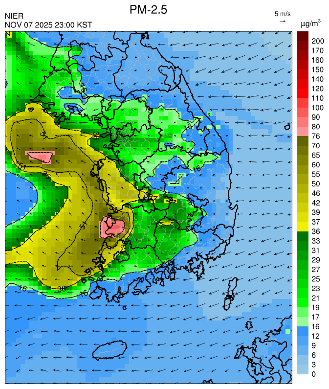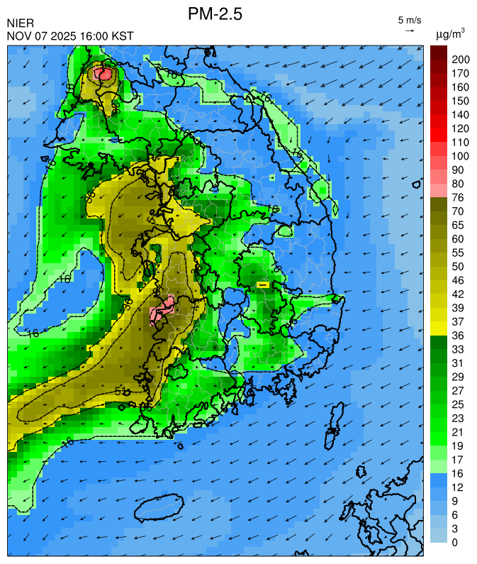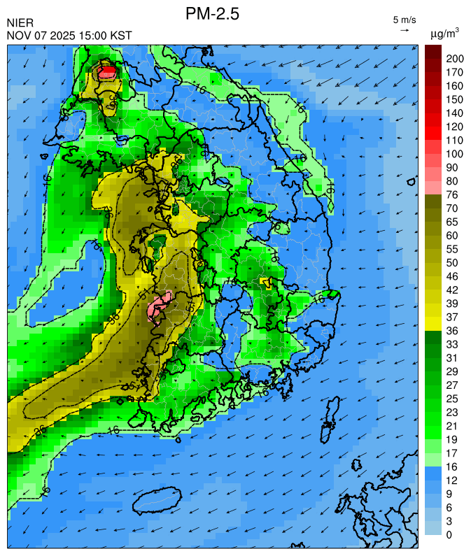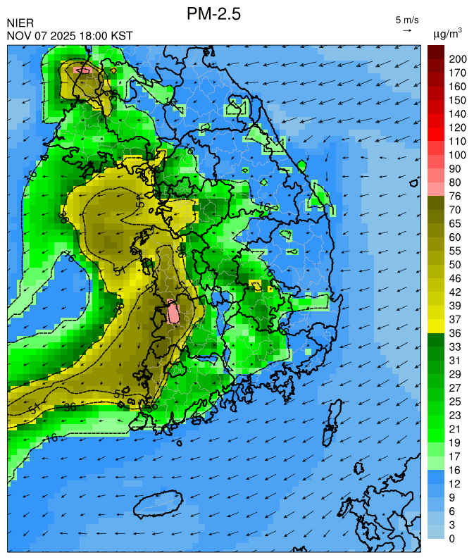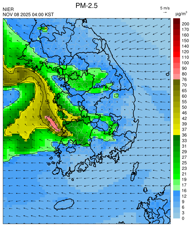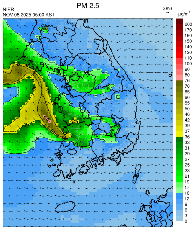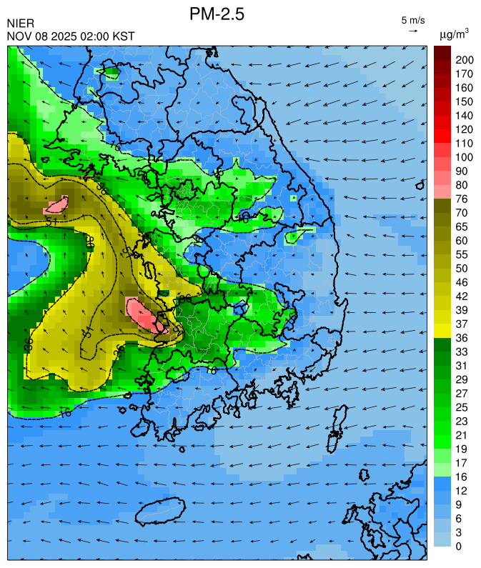 [11월 9일~12일] (9~11일) 원활한 대기 확산과 강수(9일)의 영향으로 전 권역에서 초미세먼지 농도가 '낮음' 수준일 것으로 예상됩니다. (12일) 국외 미세먼지가 유입되고 대기 정체로 국내 미세먼지가 축적되어 서울·인천 지역에서 '높음' 수준일 것으로 예상됩니다.