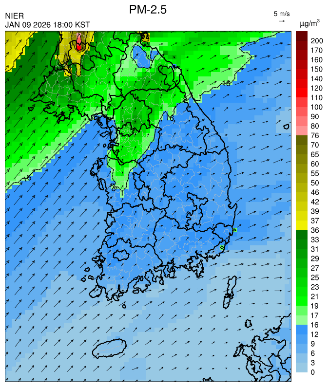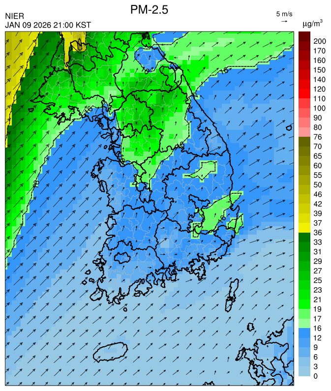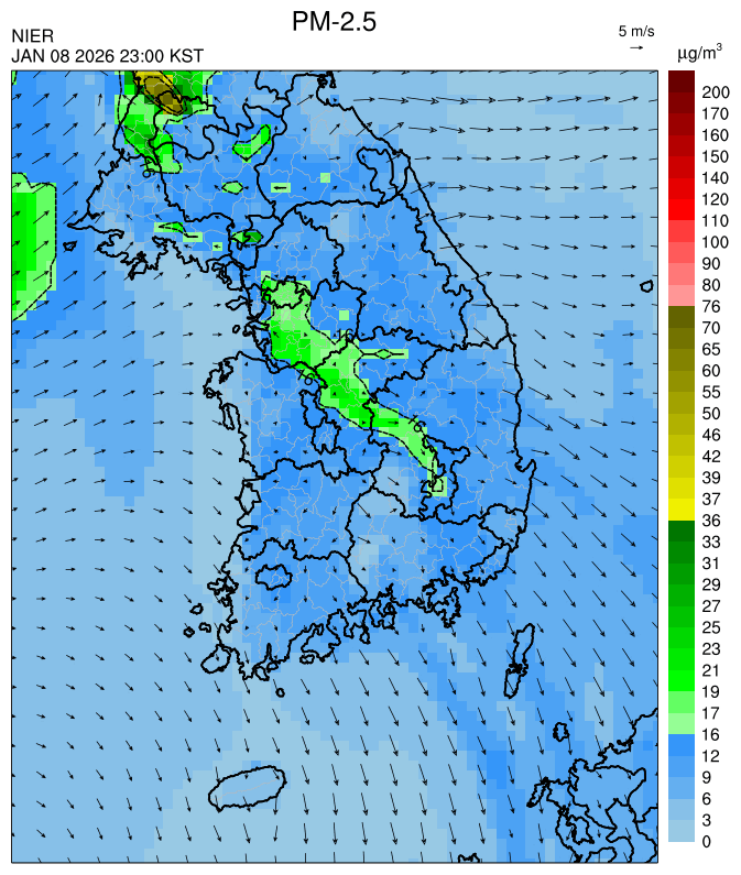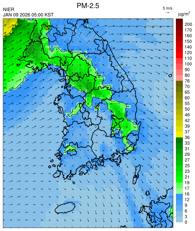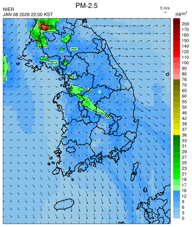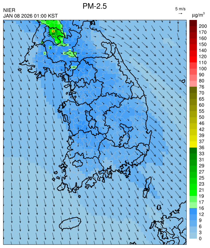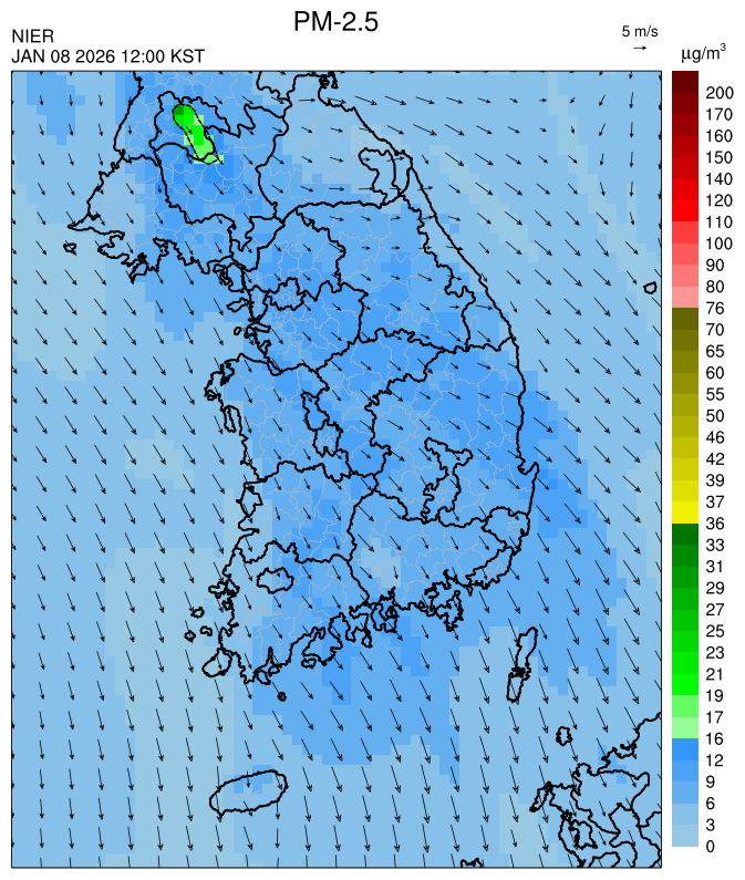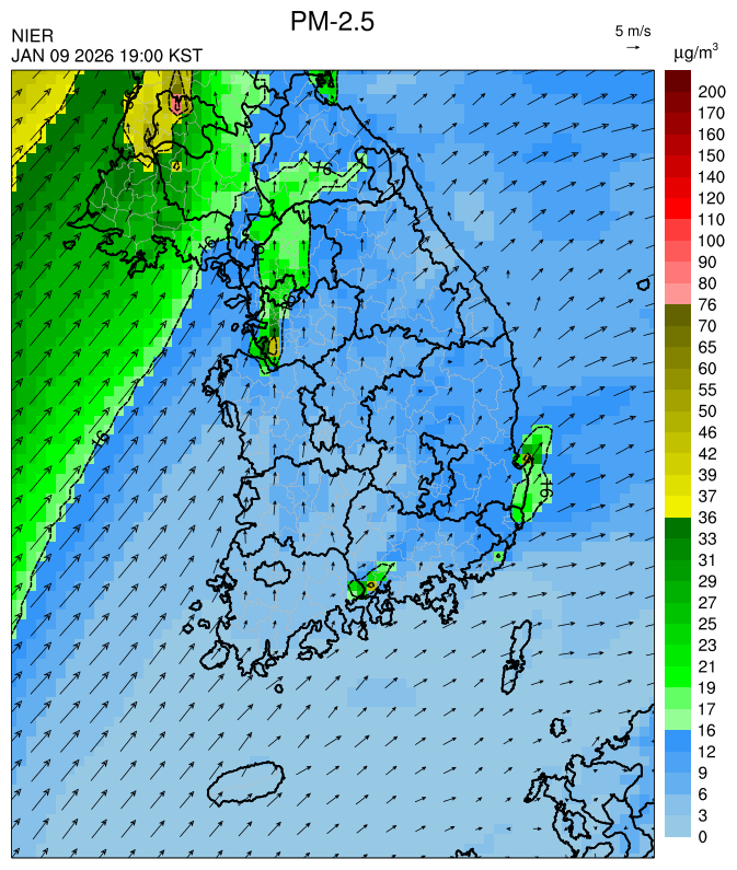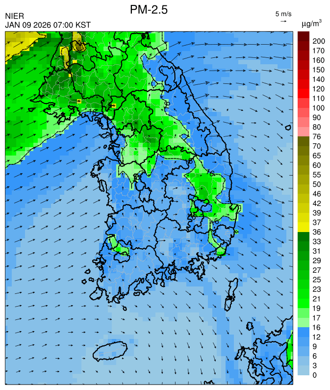 ○ 청정한 북서 기류 유입과 낮동안 원활한 연직(상·하층) 확산으로 미세먼지 농도가 전 지역에서 일평균 '좋음'으로 예상됩니다.