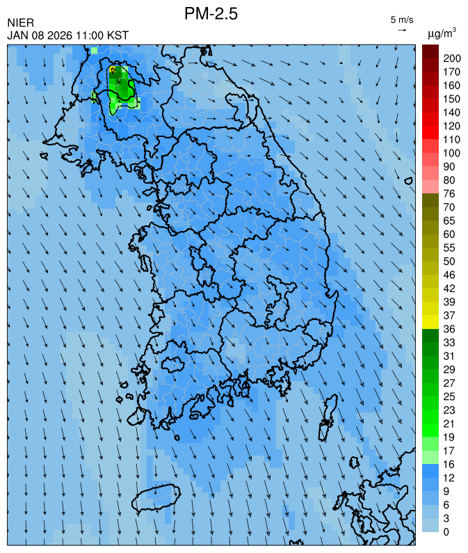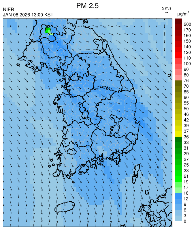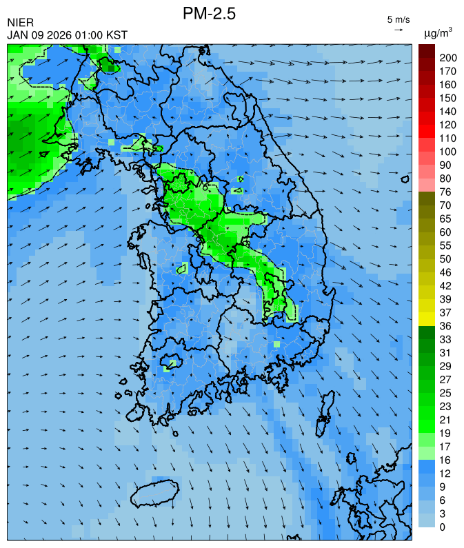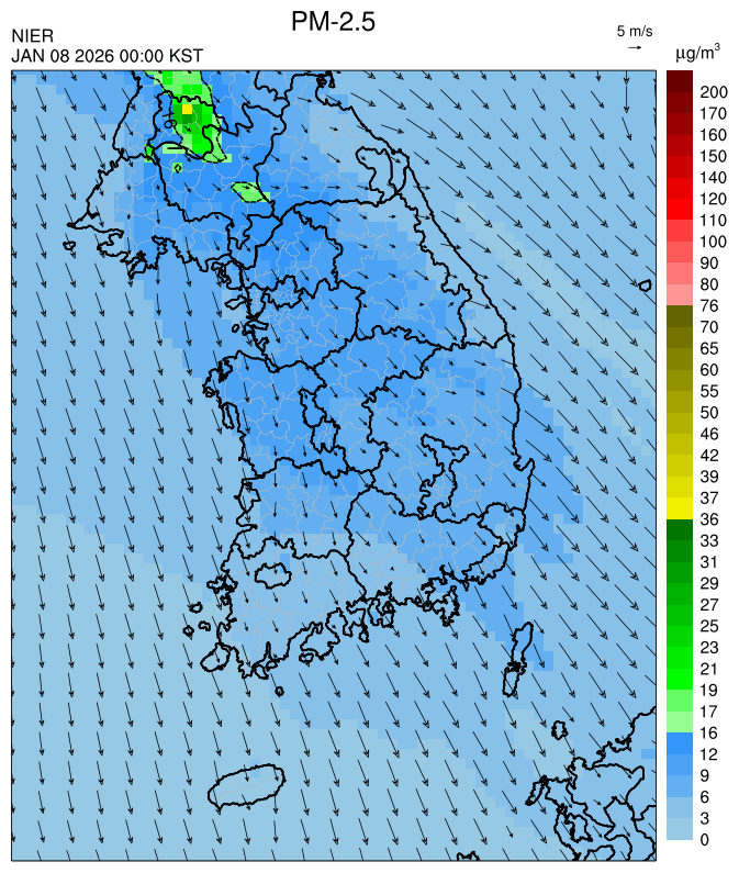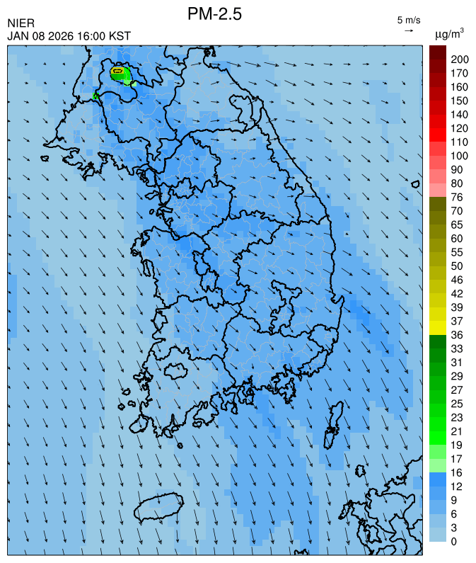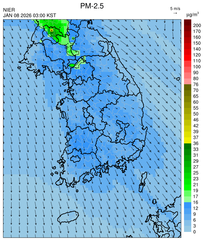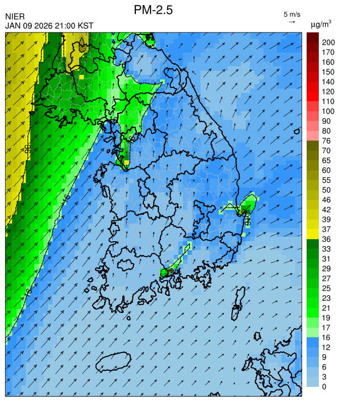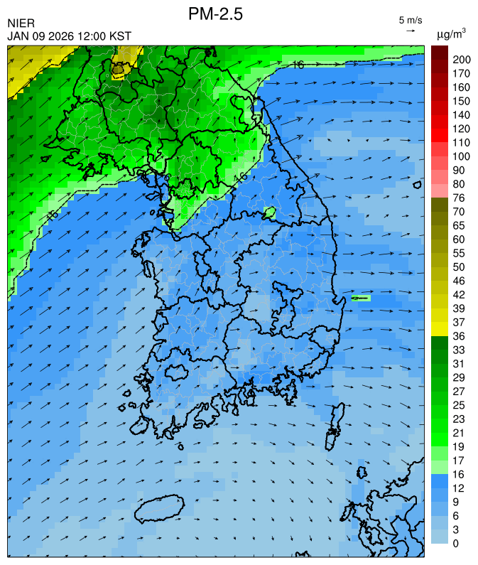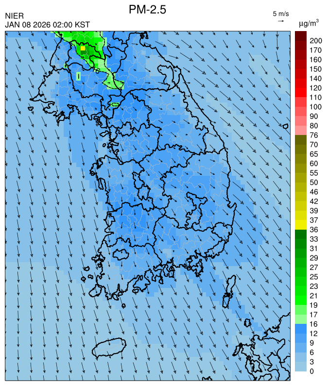 ○ 청정한 북서 기류 유입과 낮동안 원활한 연직(상·하층) 확산으로 미세먼지 농도가 전 지역에서 일평균 '좋음'으로 예상됩니다.