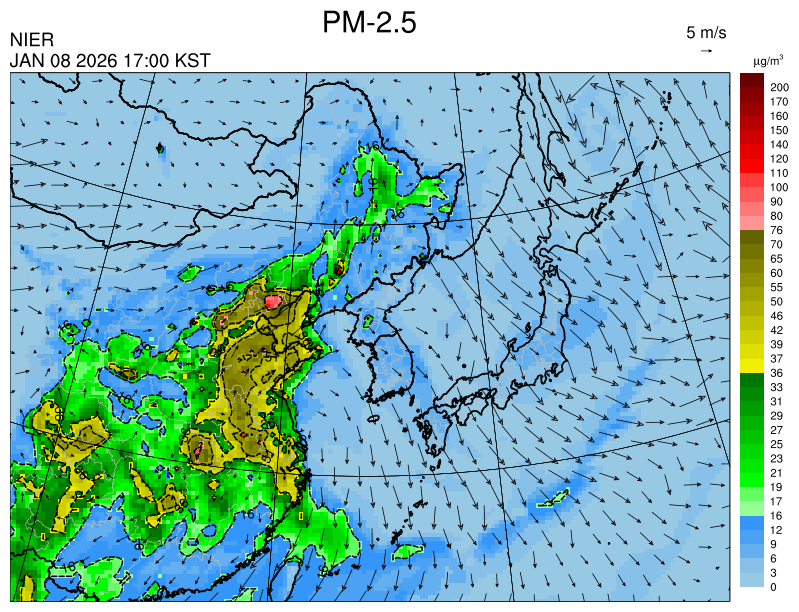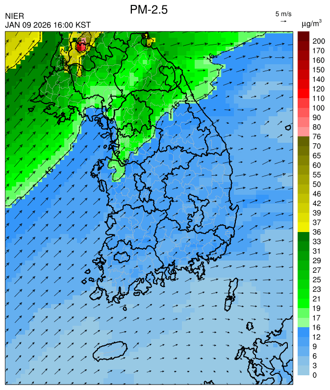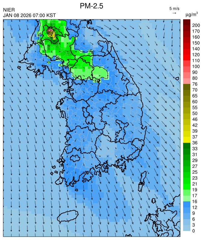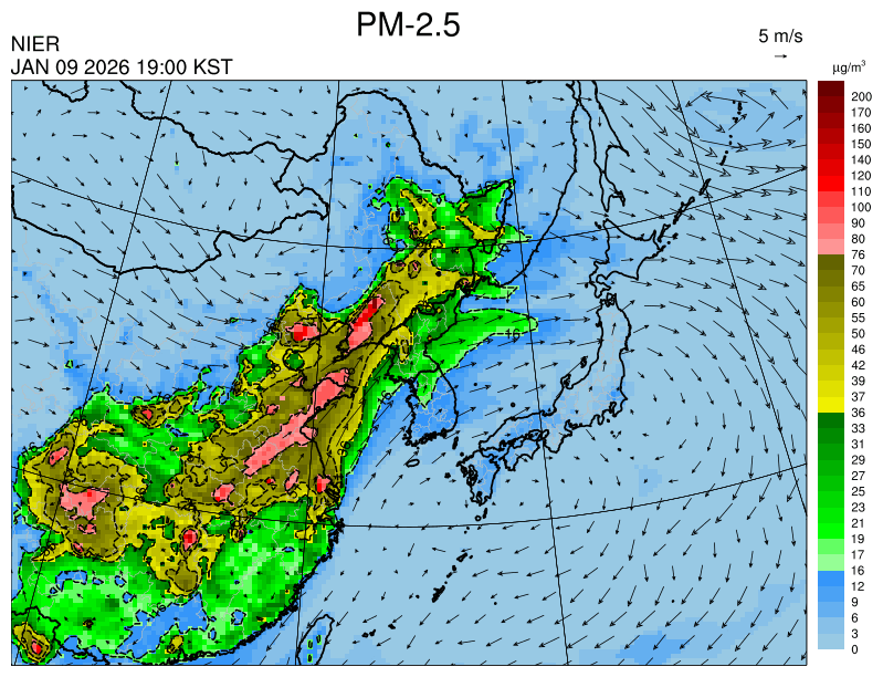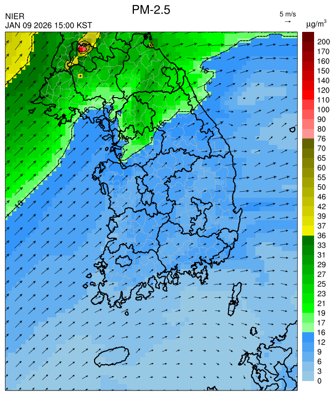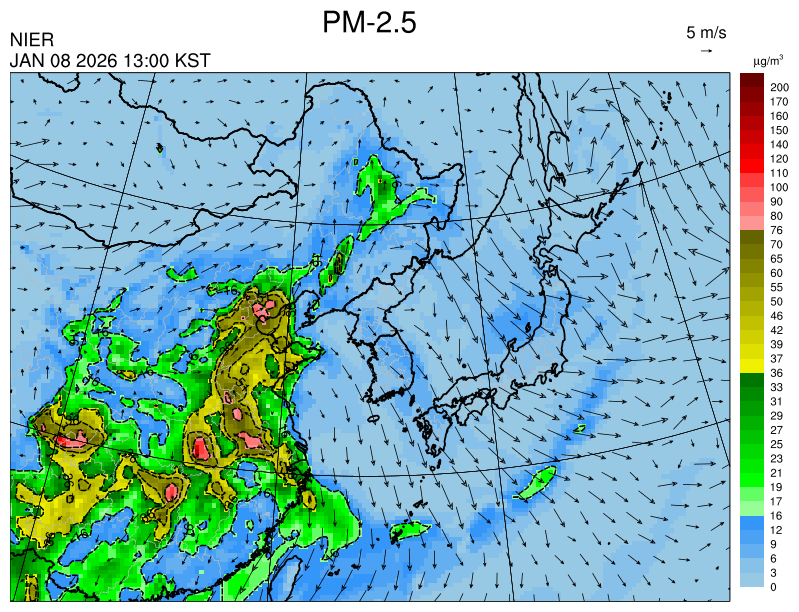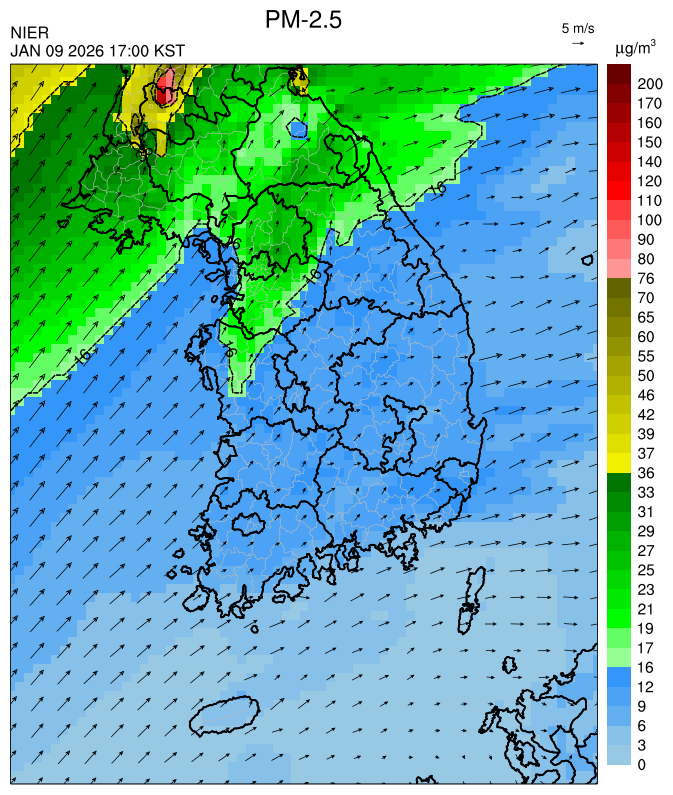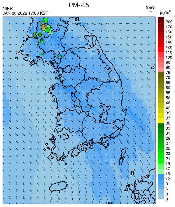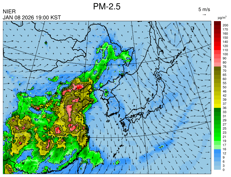○ 청정한 북서 기류 유입과 낮동안 원활한 연직(상·하층) 확산으로 미세먼지 농도가 전 지역에서 일평균 '좋음'으로 예상됩니다.