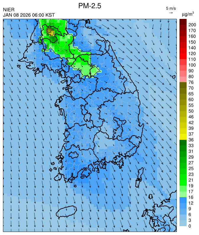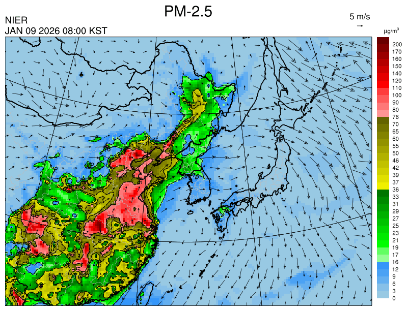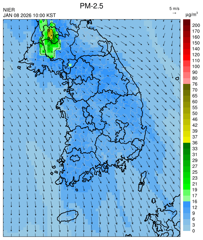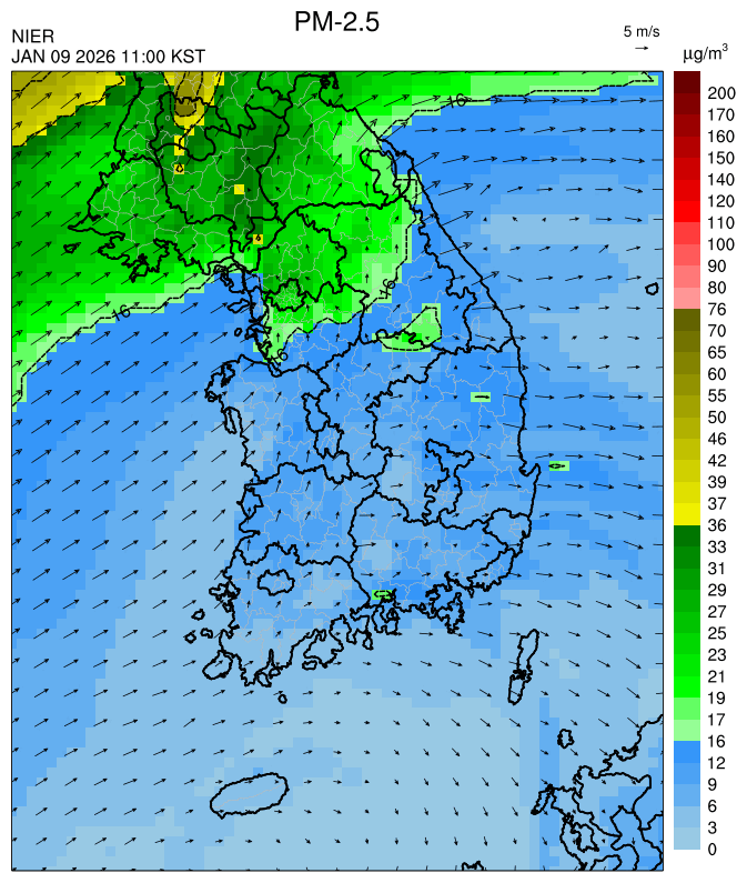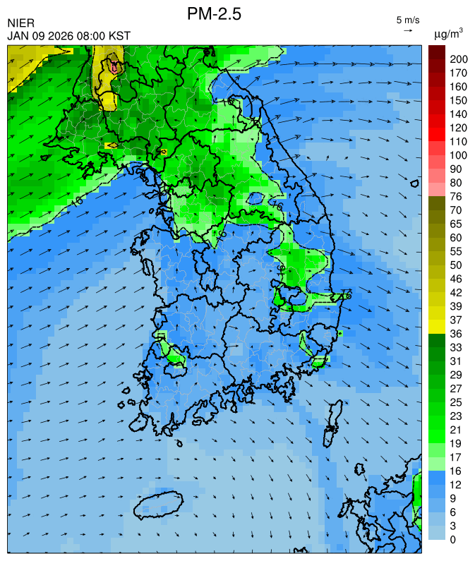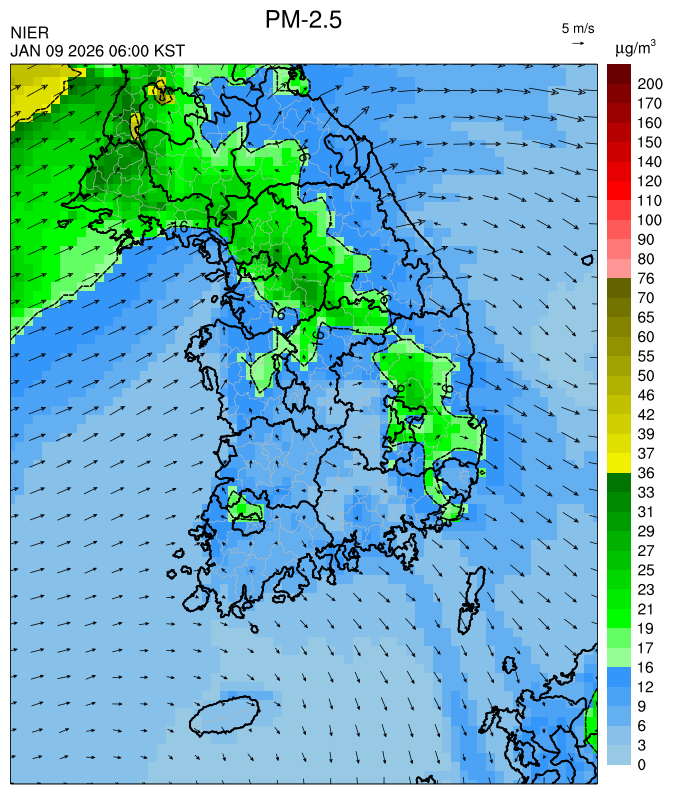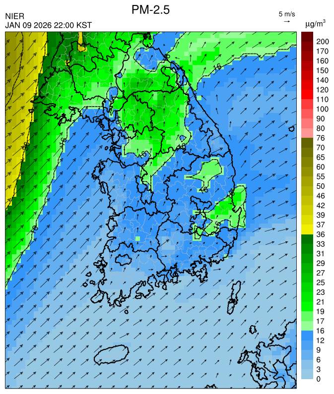 ○ 대부분 중서부 지역은 오전에 기류 수렴과 대기 정체로 국내 발생 미세먼지가 축적되어 농도가 상승하겠으나, 낮동안 연직(상·하층) 확산으로 농도가 감소하여 일평균은 '보통'으로 예상되며, 그 밖의 지역은 청정한 남서 기류 및 원활한 연직 확산의 영향으로 일평균 '좋음'으로 예상됩니다.