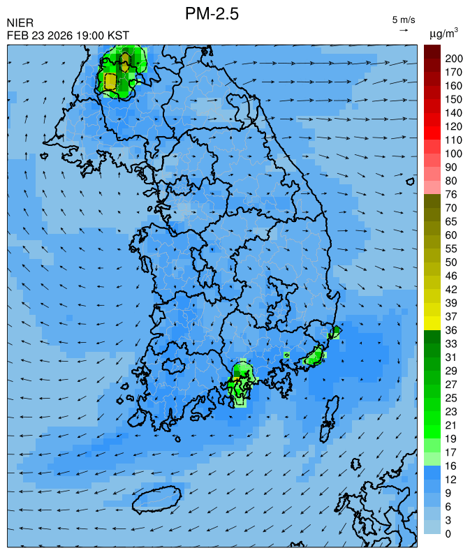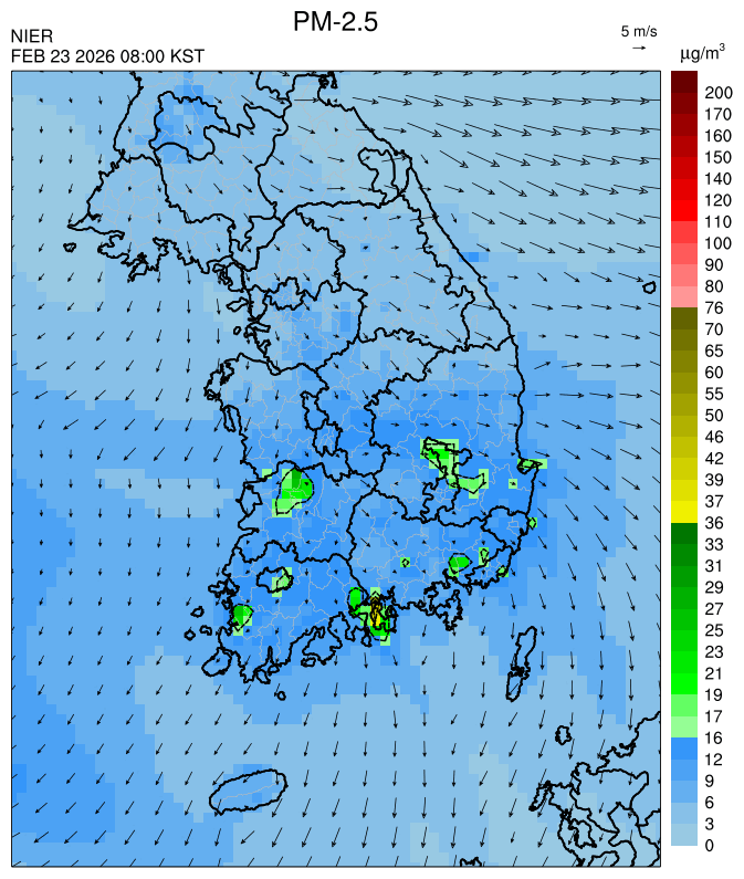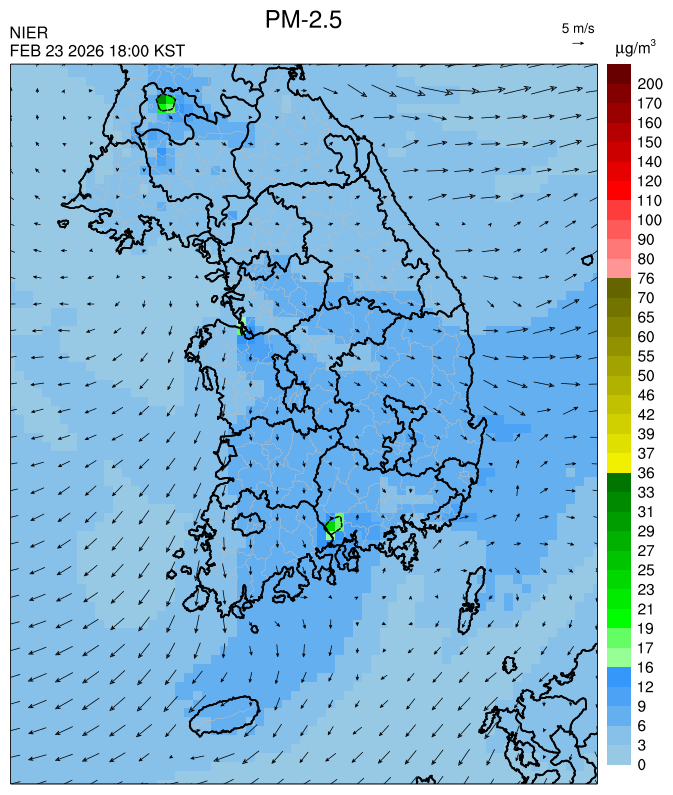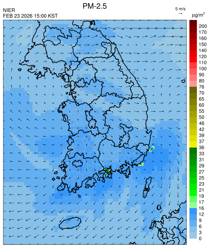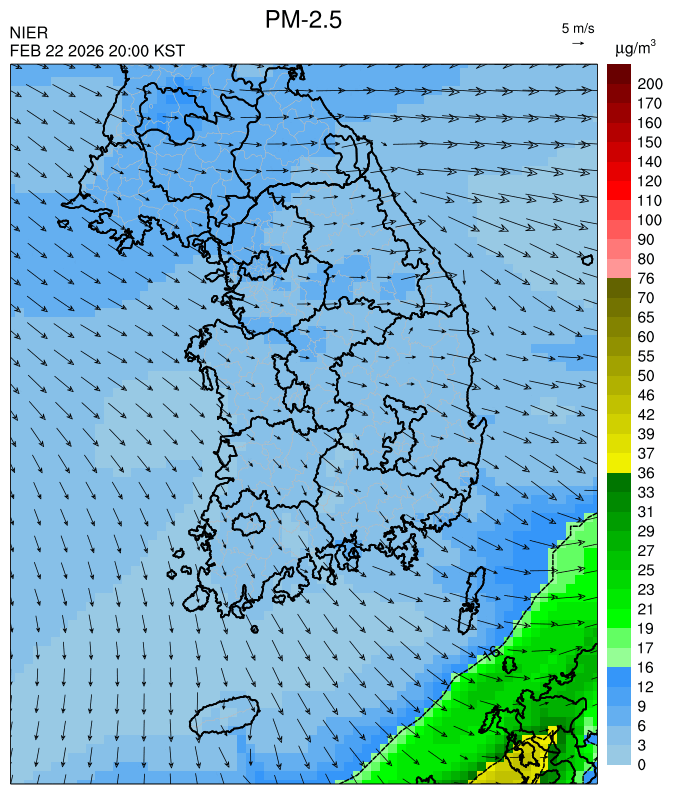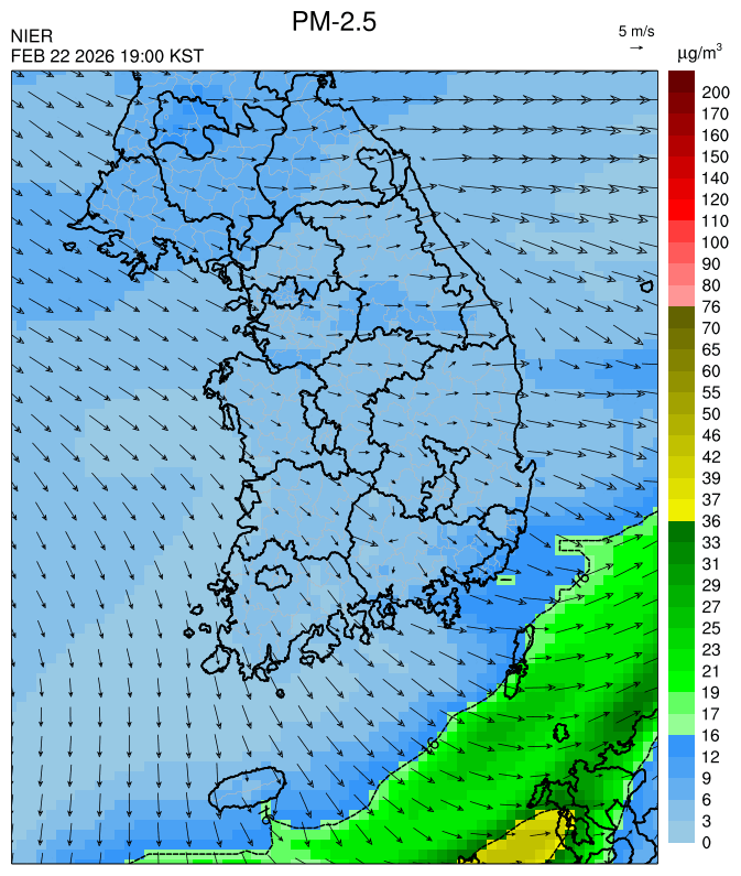 ○ [2월 24일] 청정한 동풍과 전국 강수의 영향으로 전 권역에서 일평균 '낮음'이 예상됩니다. [2월 25일~27일] 청정한 동풍과 원활한 대기확산으로 전 권역에서 일평균 '낮음'이 예상됩니다.