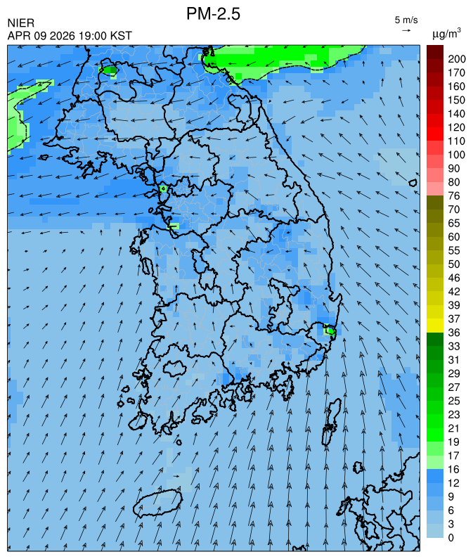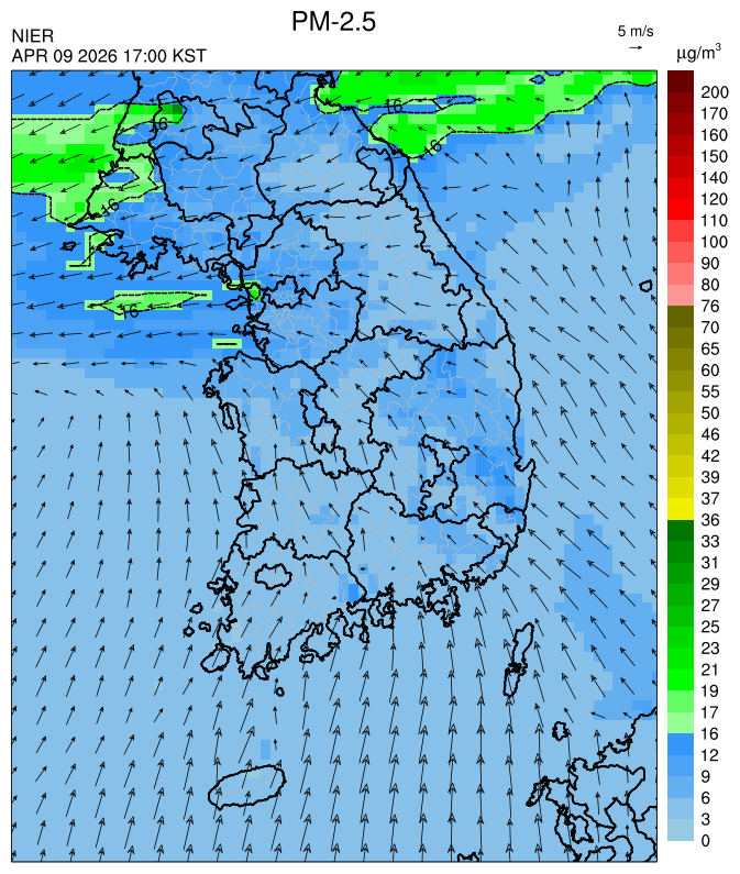 ○ 청정한 남서풍 유입과 강수의 영향으로 대기질이 청정할 것으로 예상됩니다.