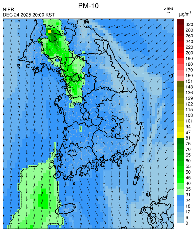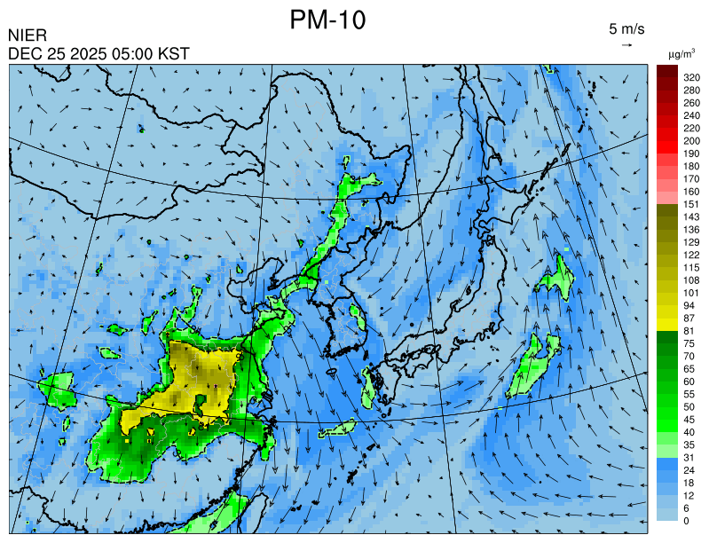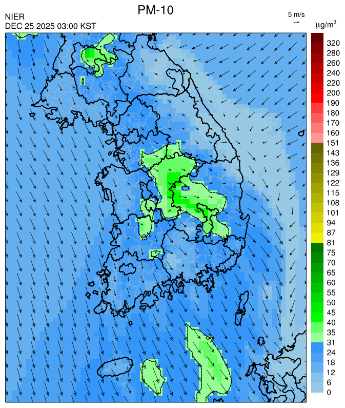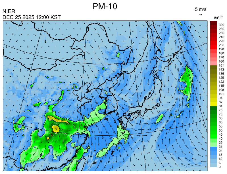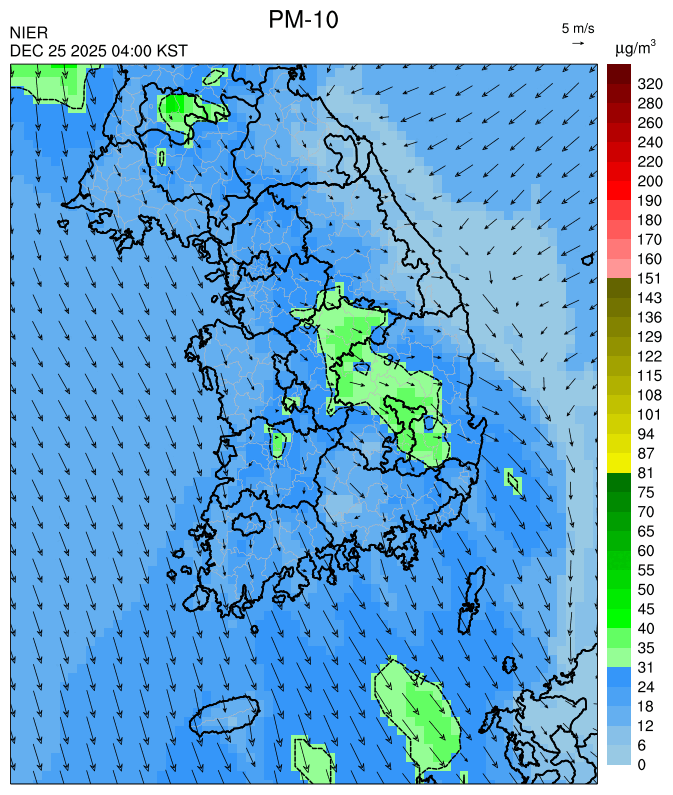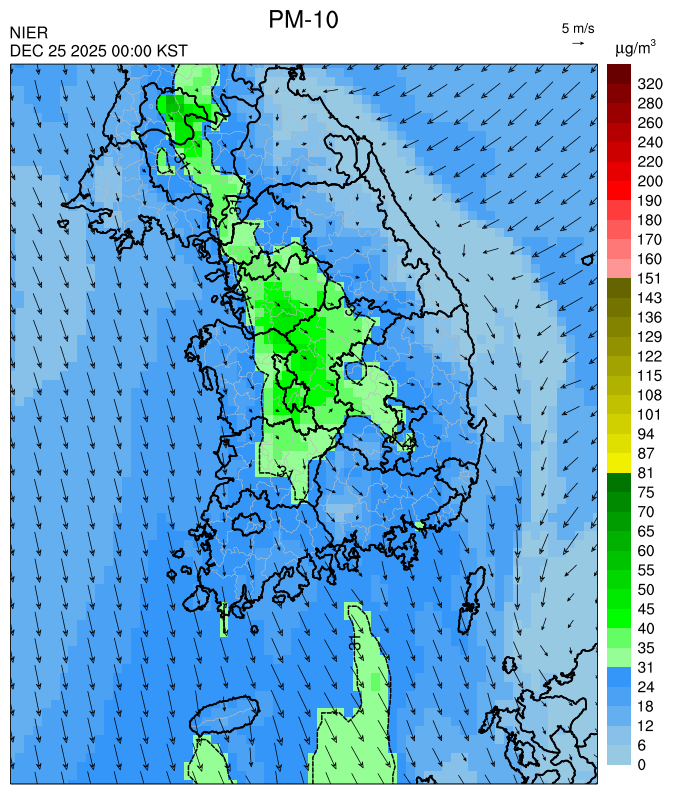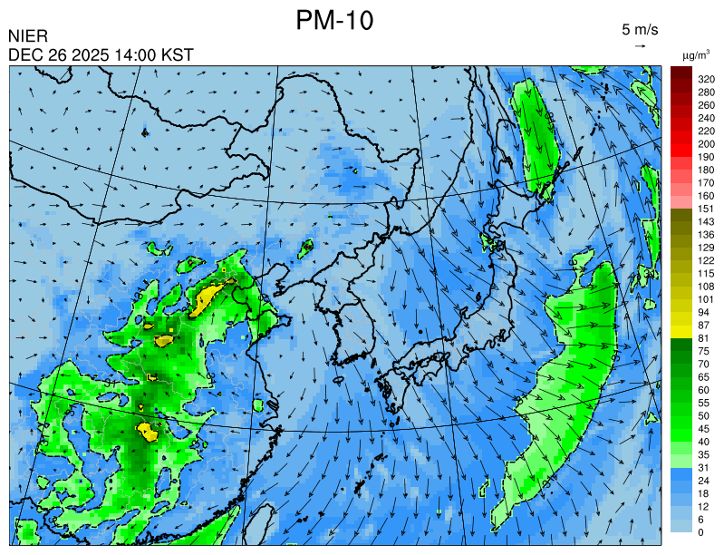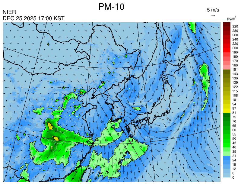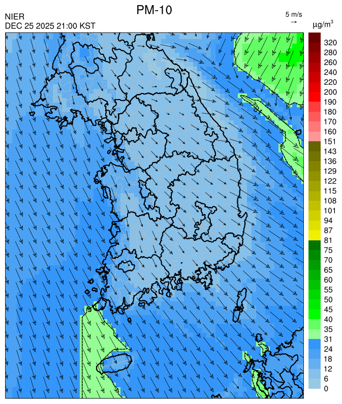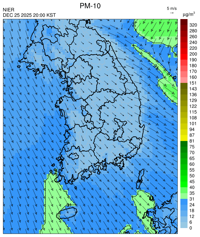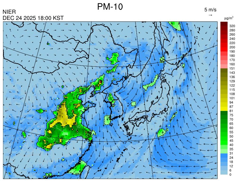○ 청정한 북서 기류의 유입과 낮동안 원활한 연직(상·하층) 확산으로 전 지역에서 미세먼지 농도는 일평균 '좋음'으로 예상됩니다.