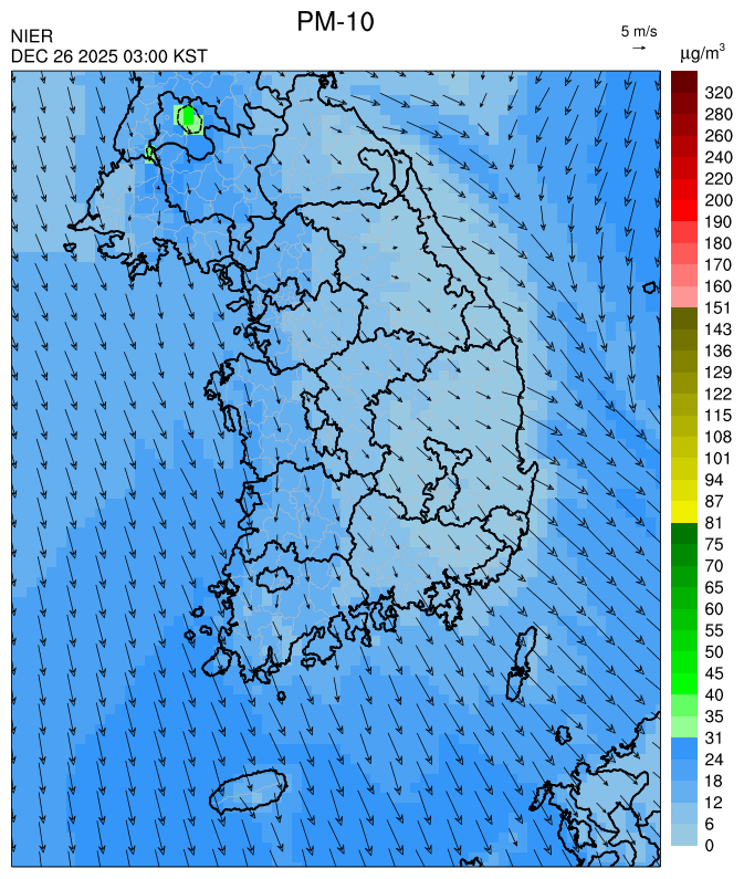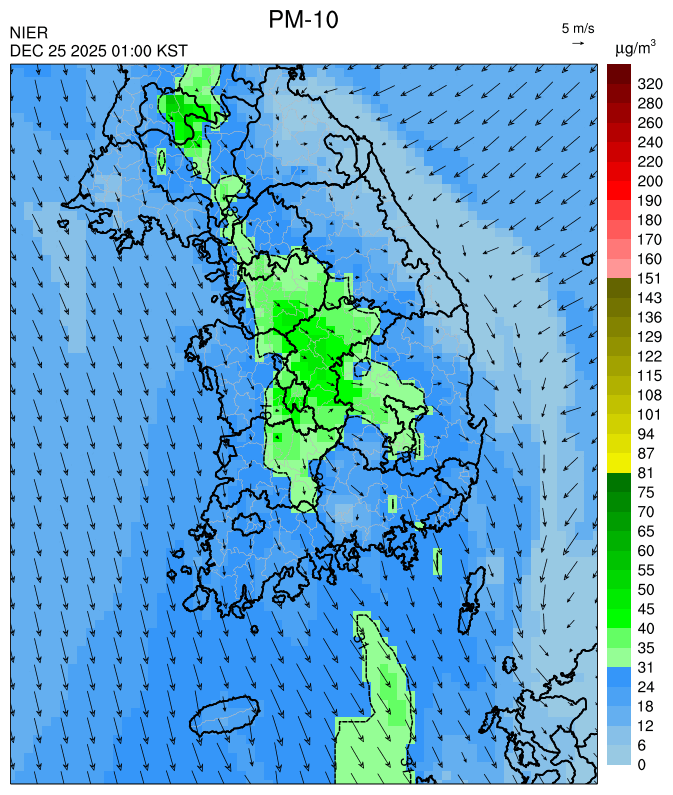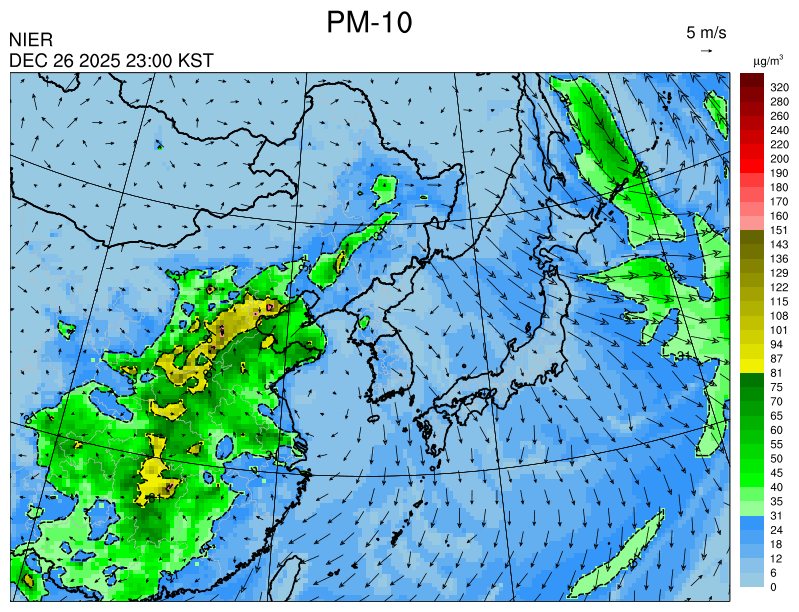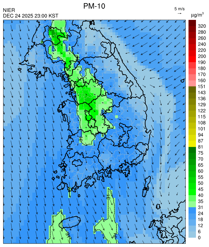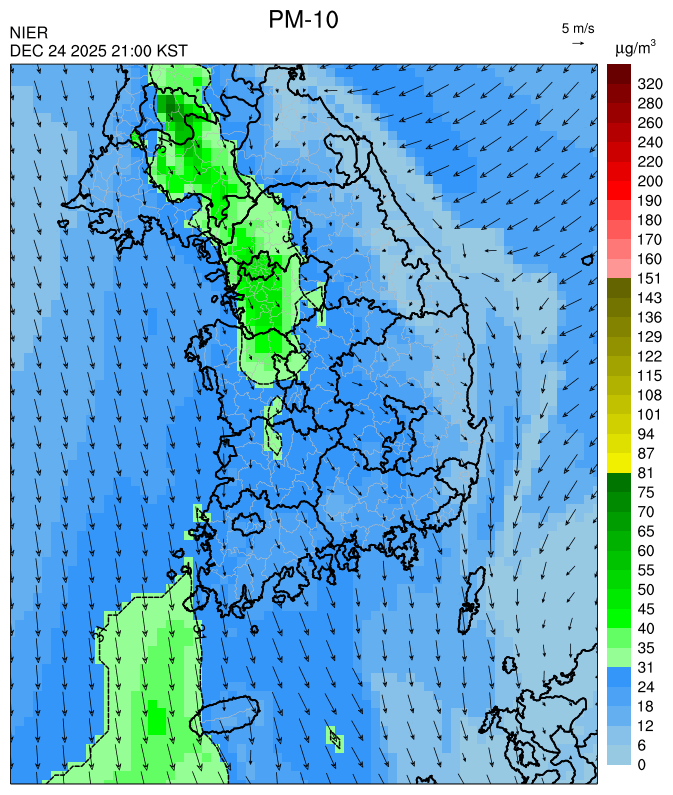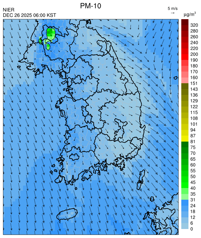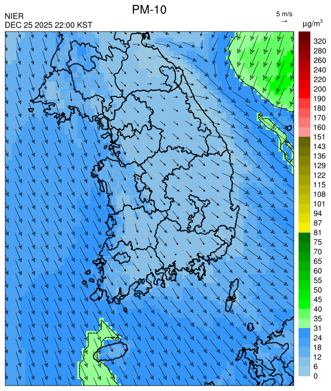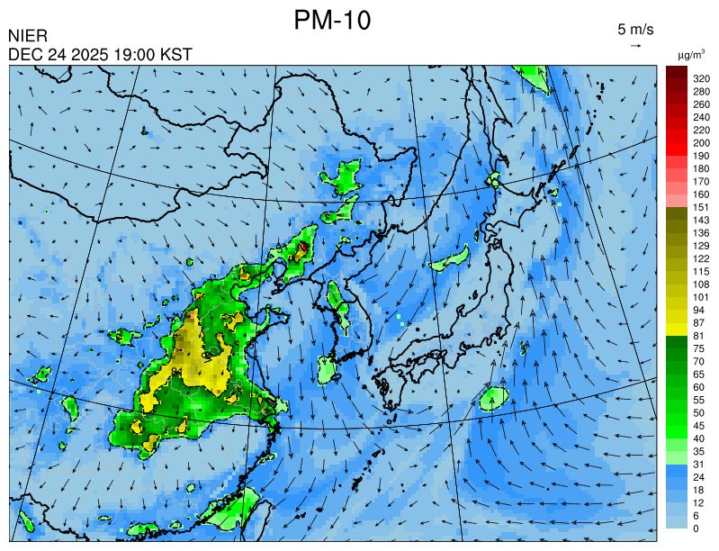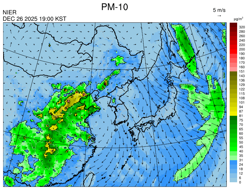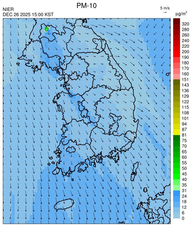 ○ 청정한 북서 기류의 유입과 낮동안 원활한 연직(상·하층) 확산으로 전 지역에서 미세먼지 농도는 일평균 '좋음'으로 예상됩니다.