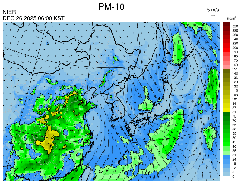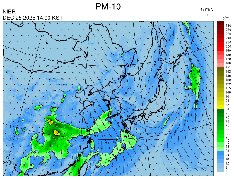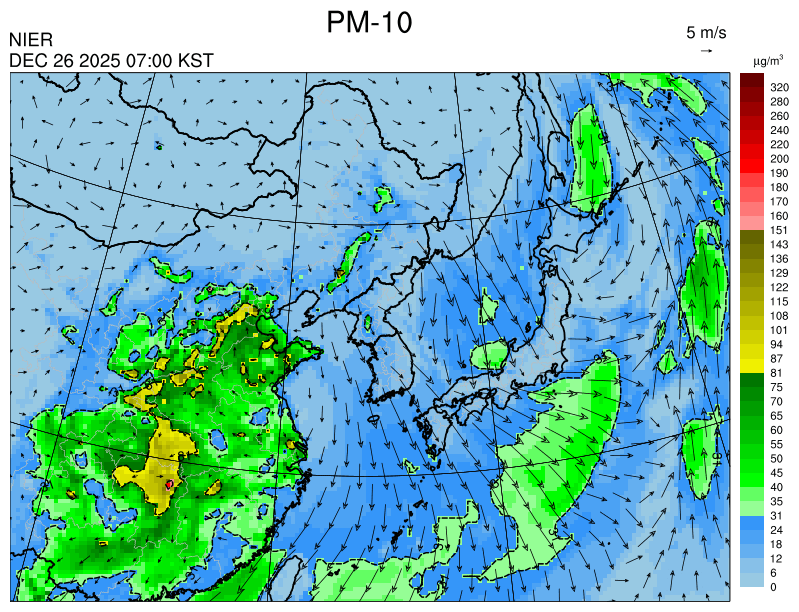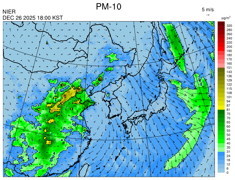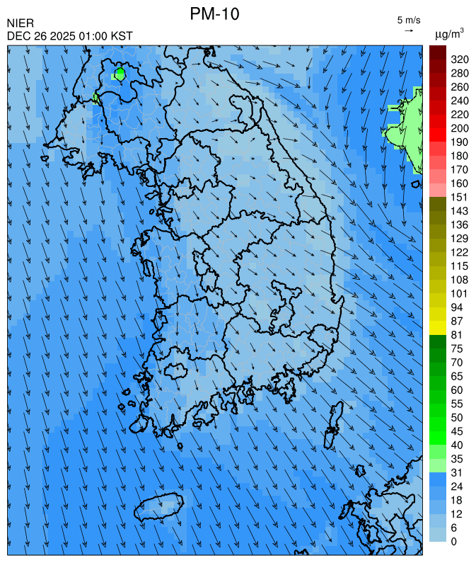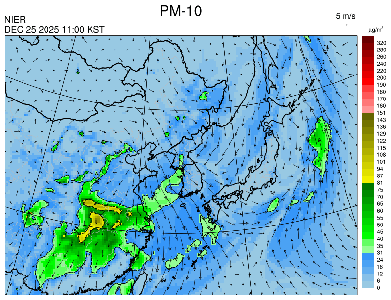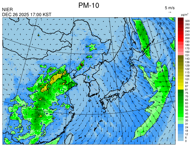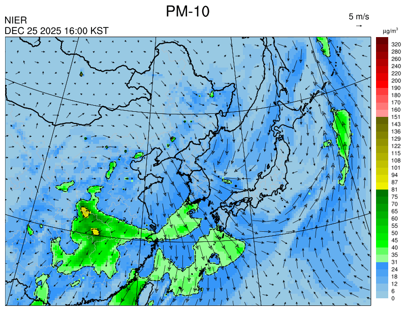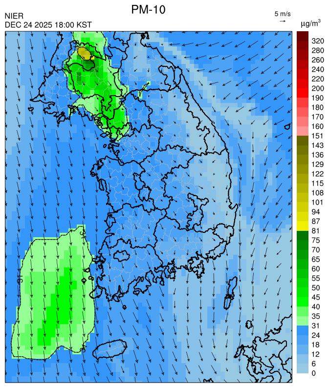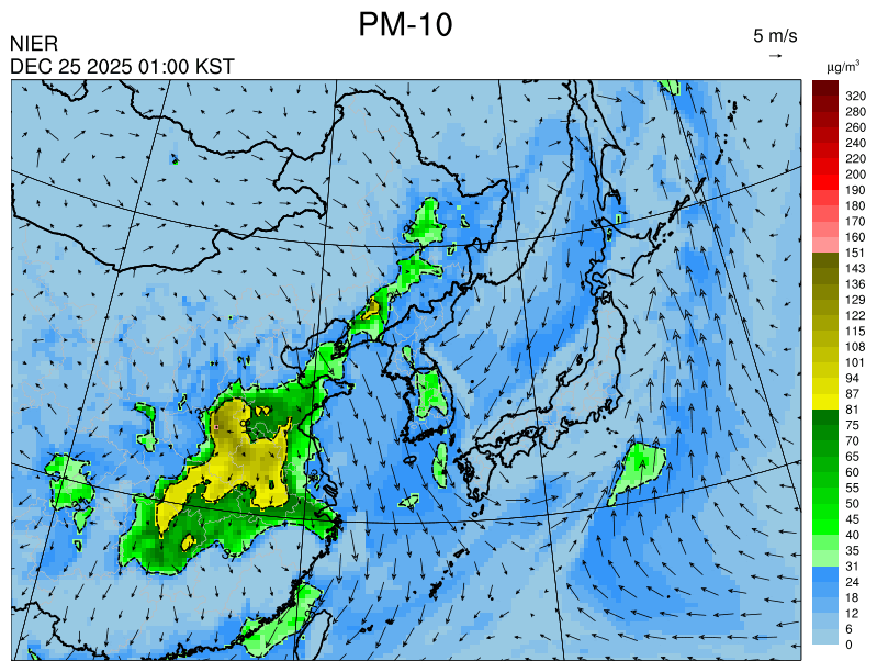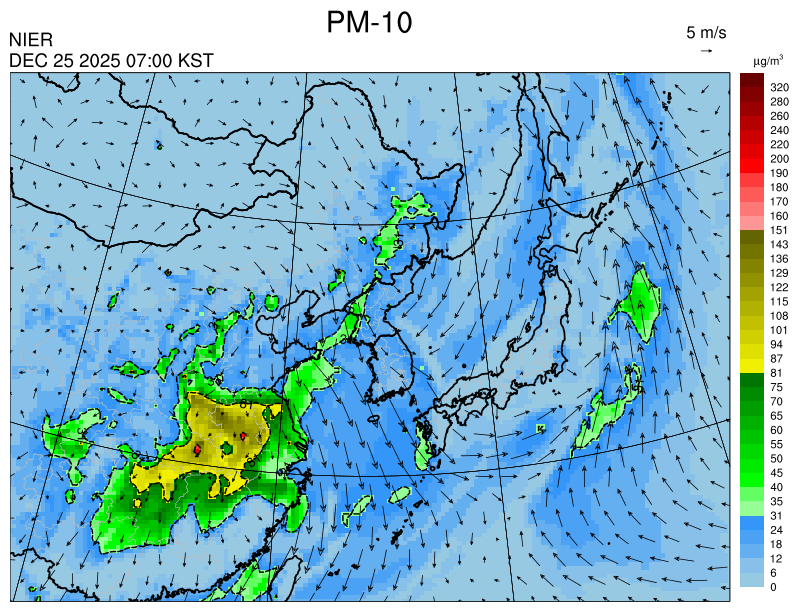 ○ 청정한 북서 기류의 유입과 낮동안 원활한 연직(상·하층) 확산으로 전 지역에서 미세먼지 농도는 일평균 '좋음'으로 예상됩니다.