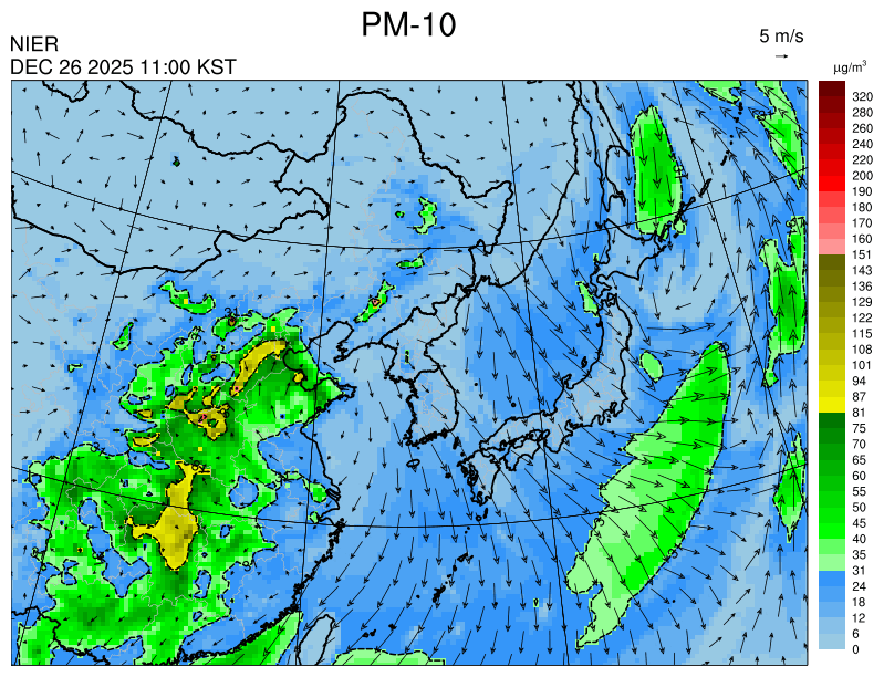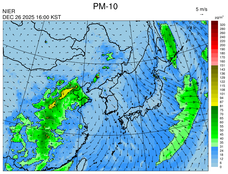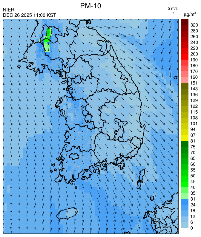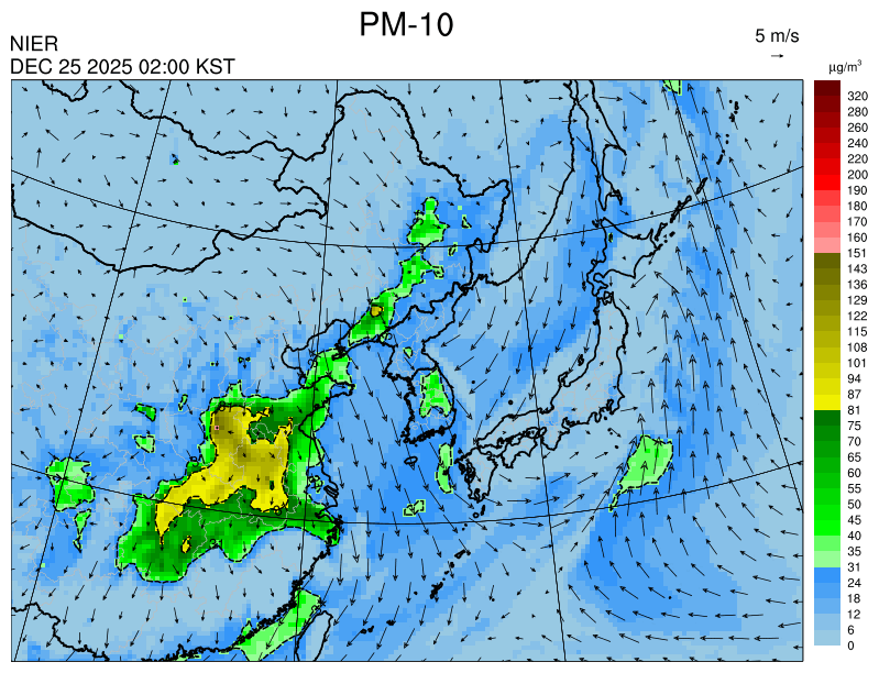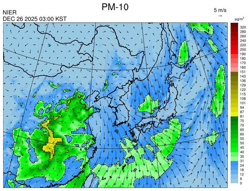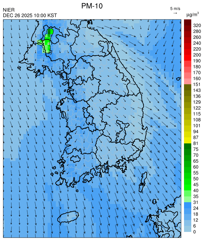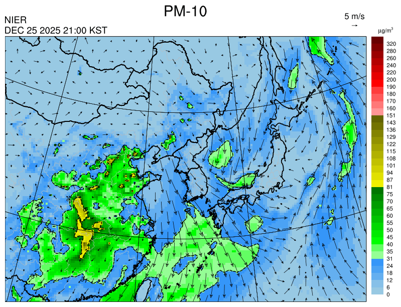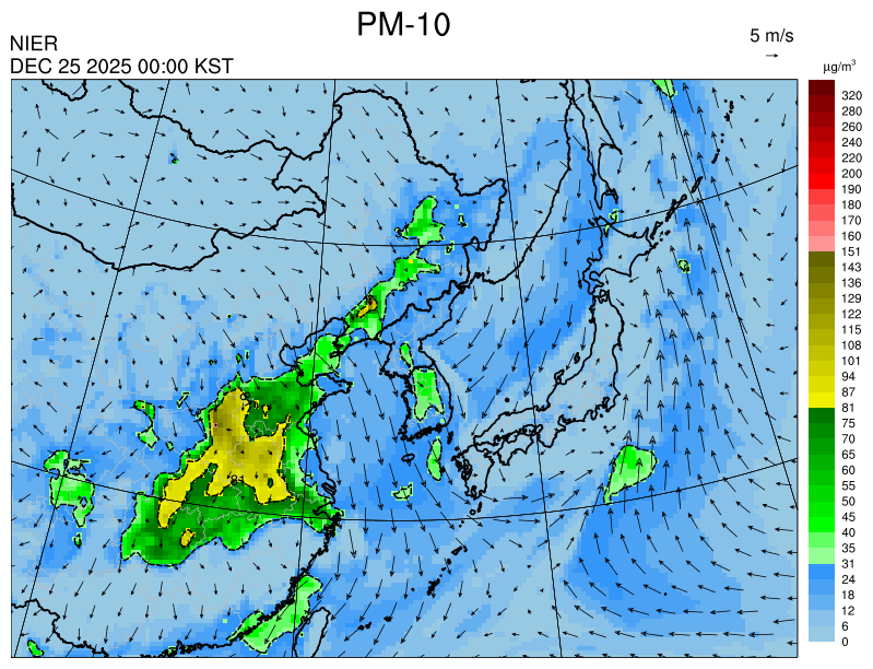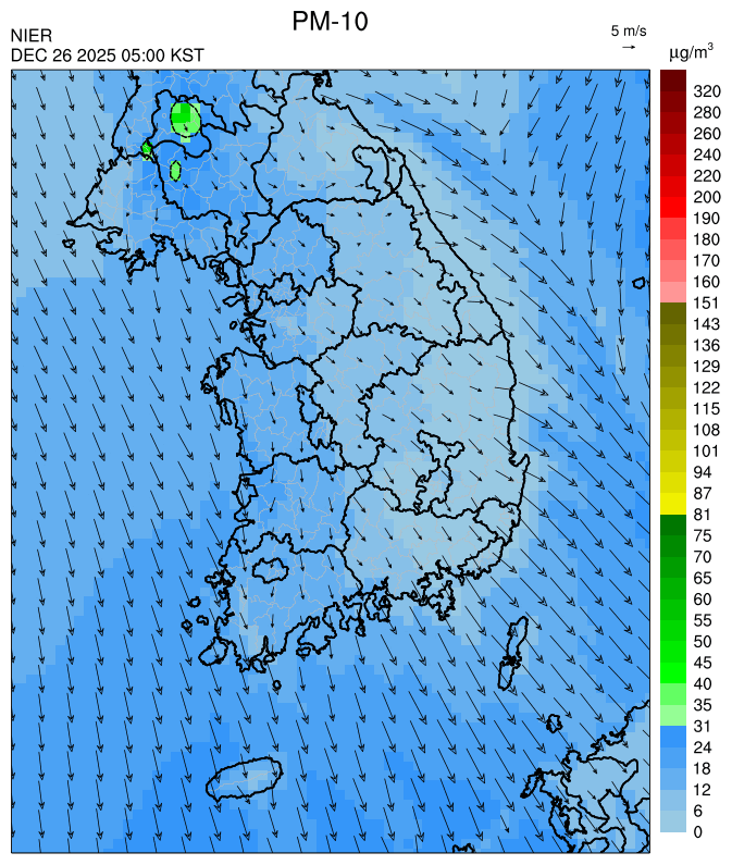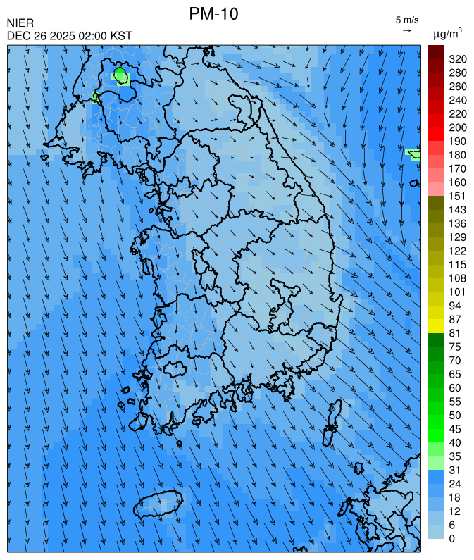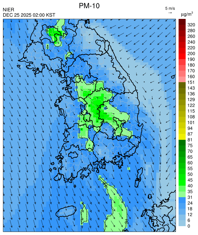 ○ 청정한 북서 기류의 유입과 낮동안 원활한 연직(상·하층) 확산으로 전 지역에서 미세먼지 농도는 일평균 '좋음'으로 예상됩니다.