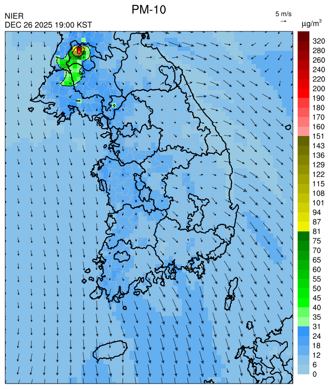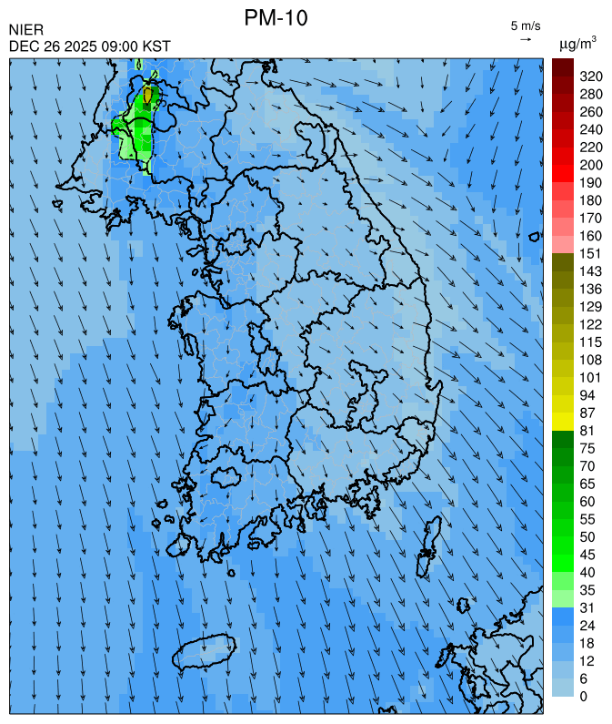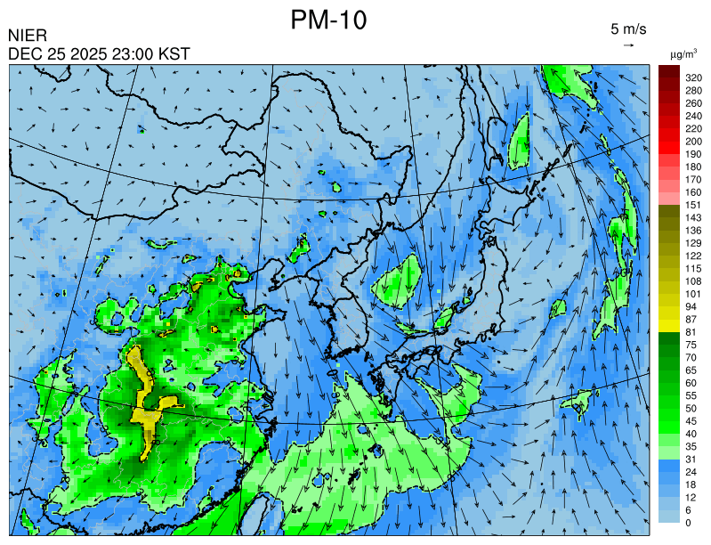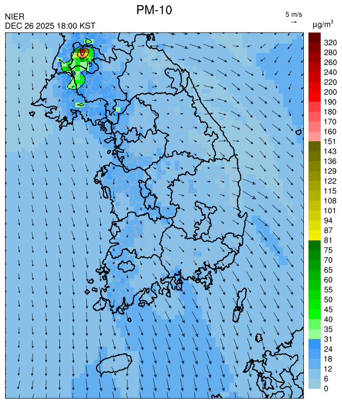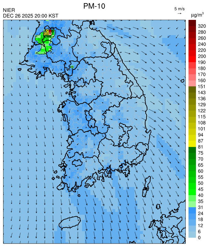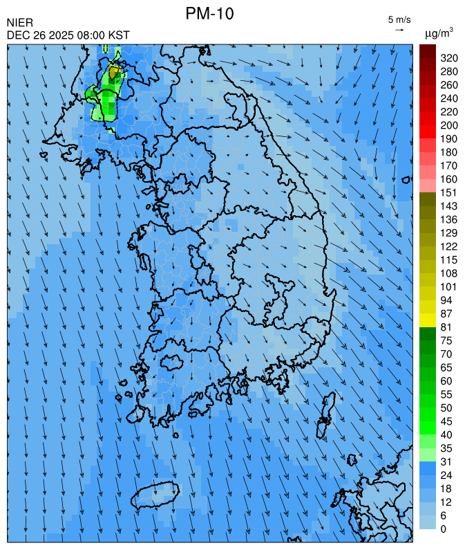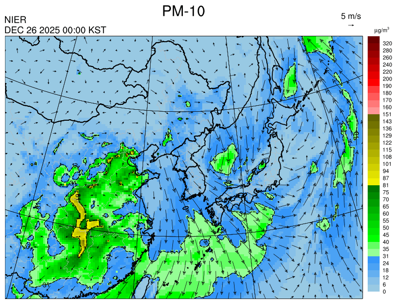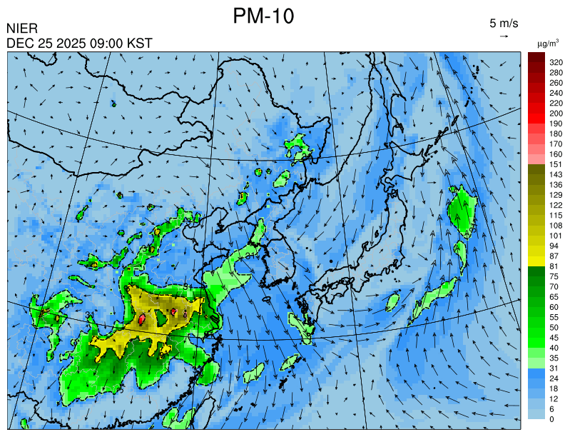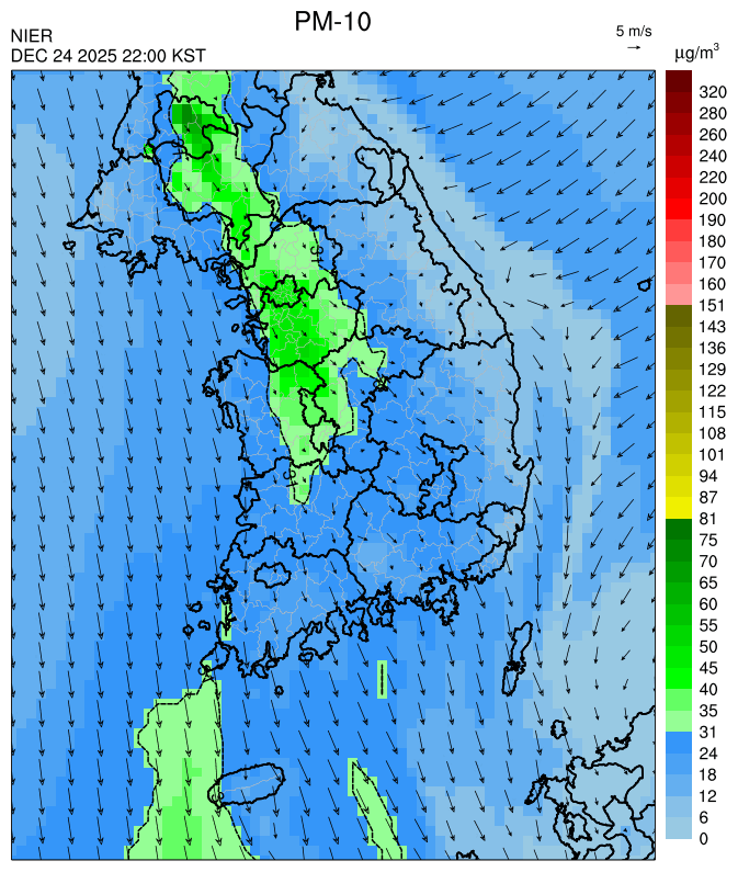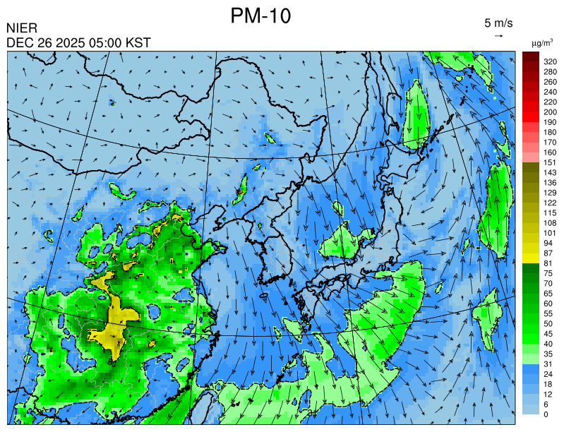 ○ 청정한 북서 기류의 유입과 낮동안 원활한 연직(상·하층) 확산으로 전 지역에서 미세먼지 농도는 일평균 '좋음'으로 예상됩니다.