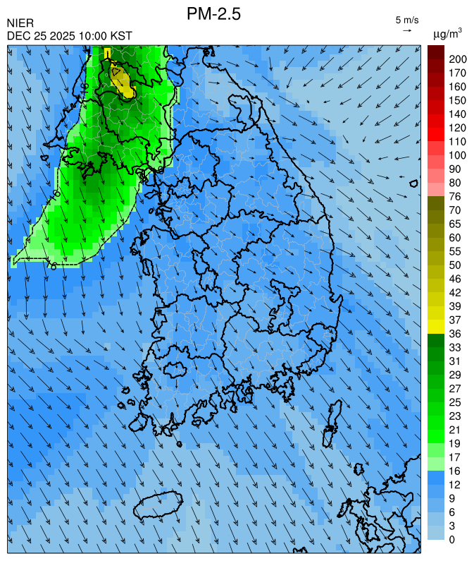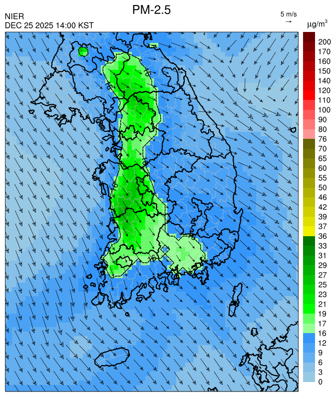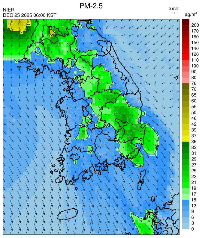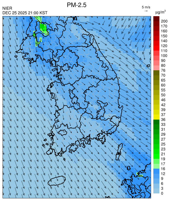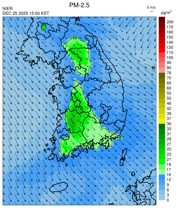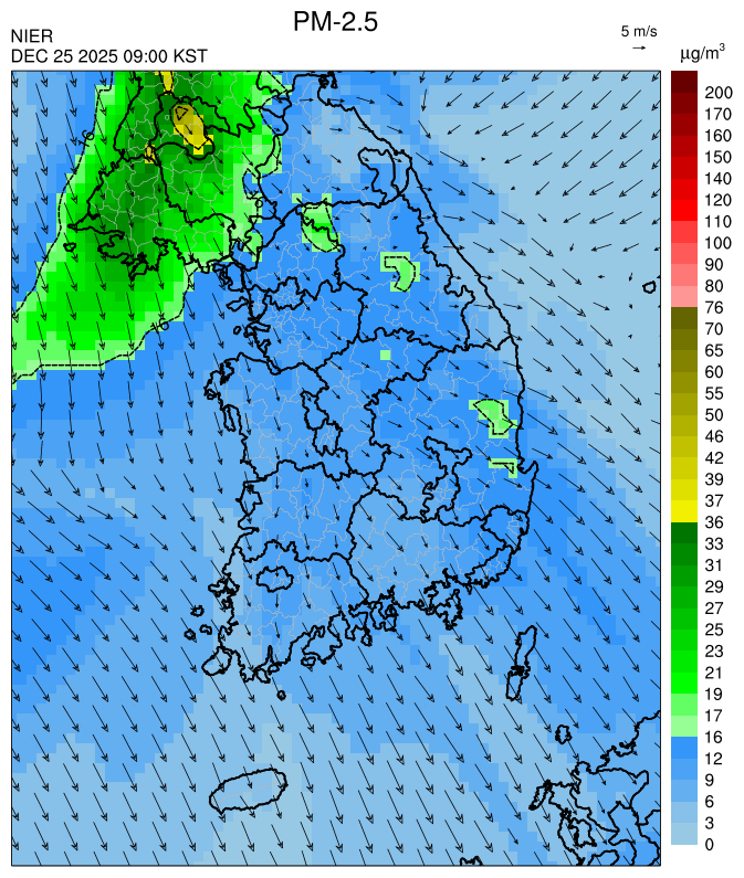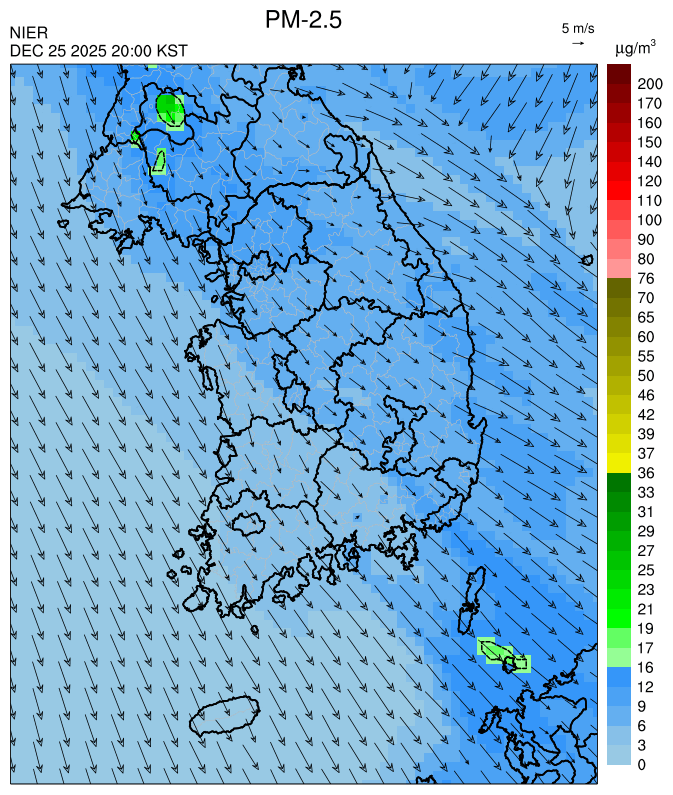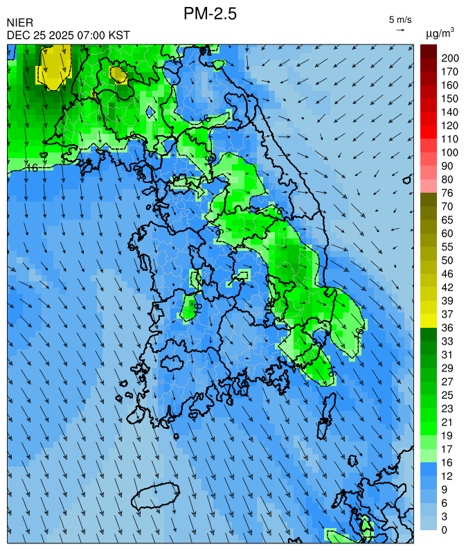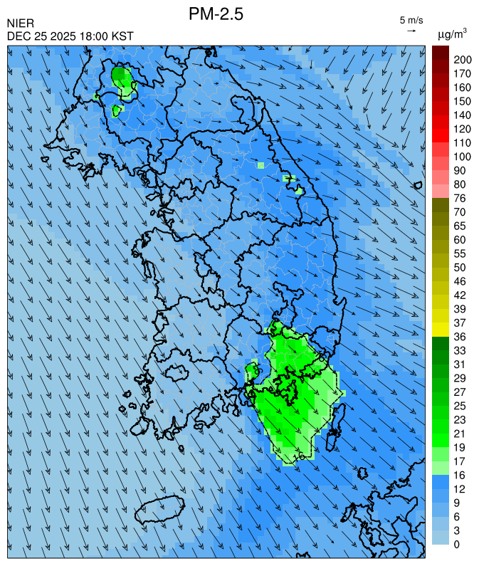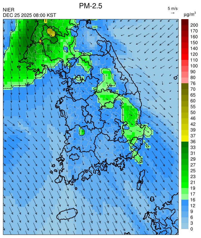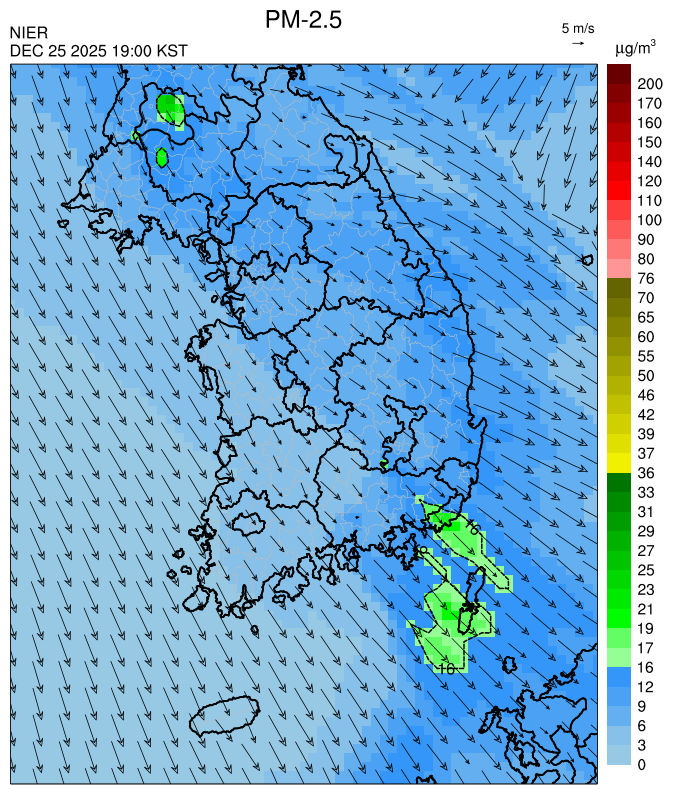○ 청정한 북서 기류의 유입과 낮동안 원활한 연직(상·하층) 확산으로 전 지역에서 미세먼지 농도는 일평균 '좋음'으로 예상됩니다.