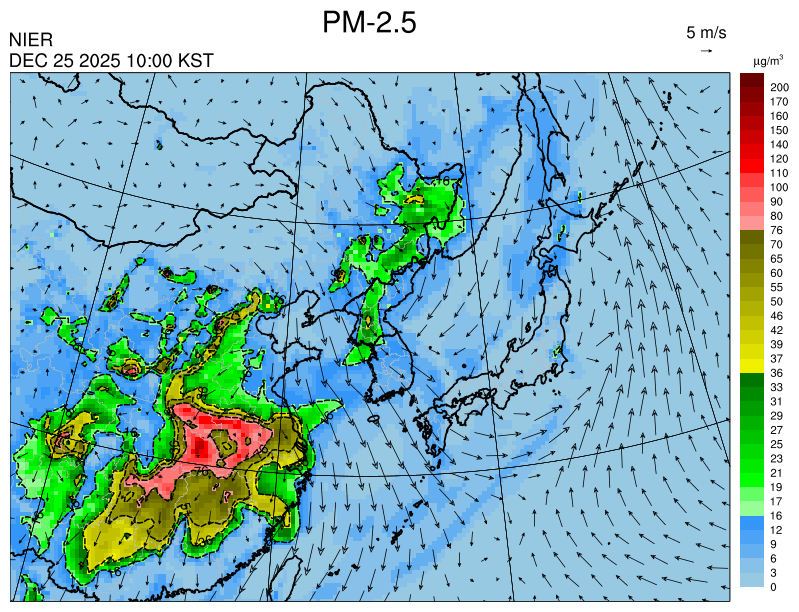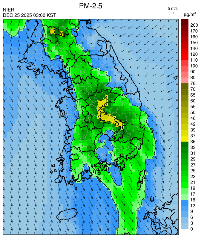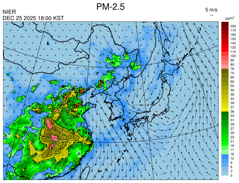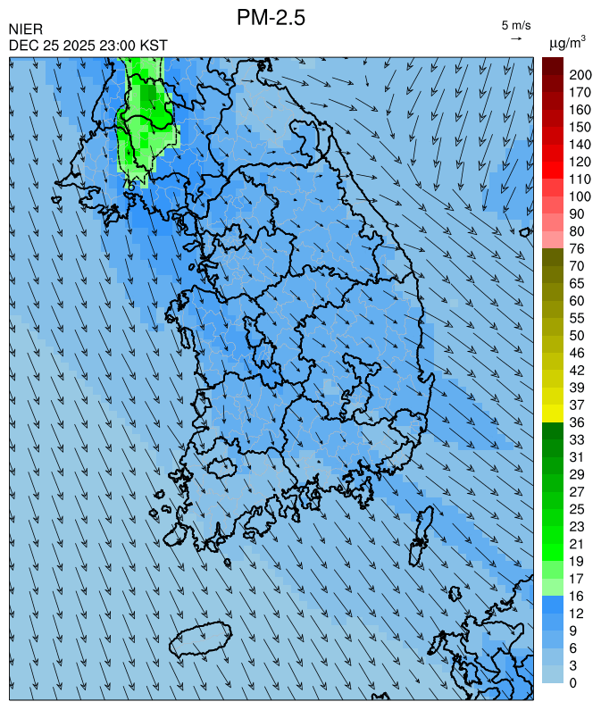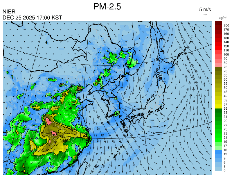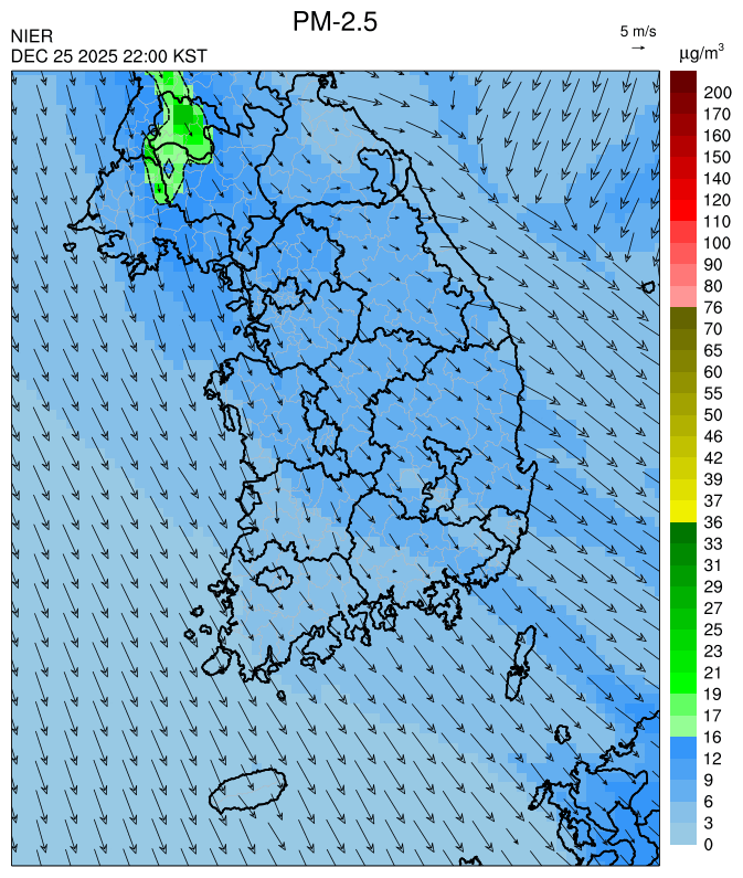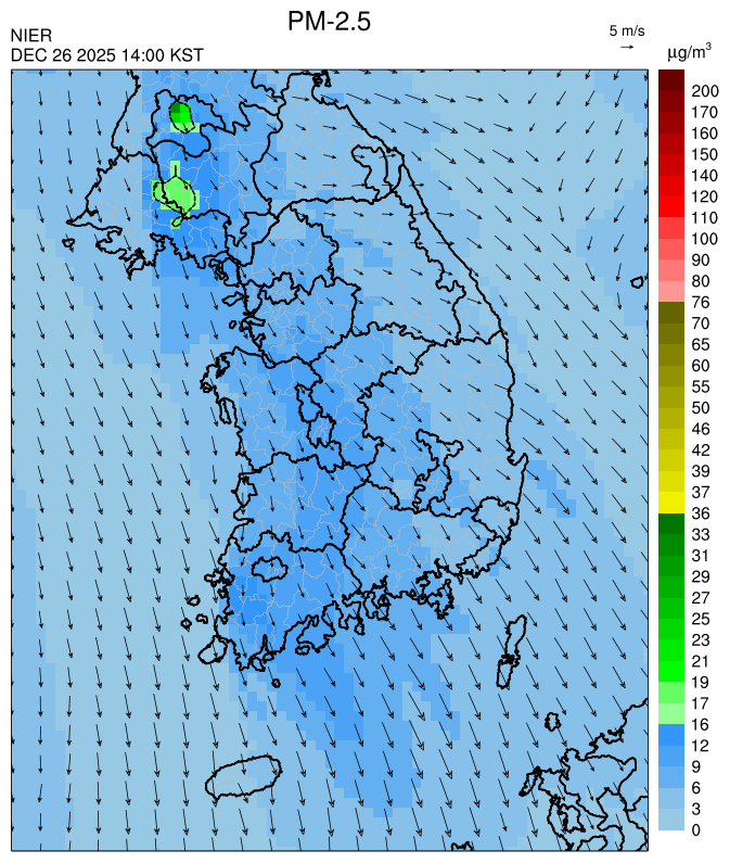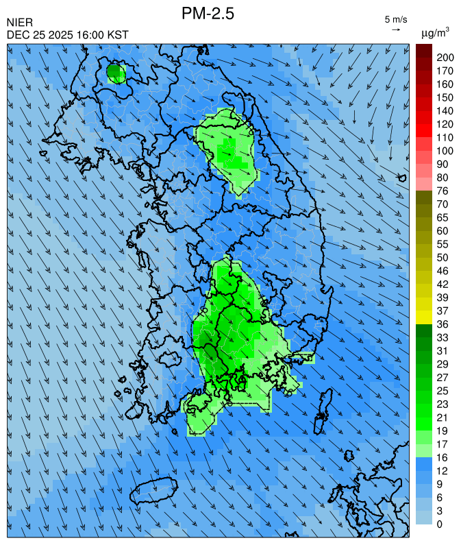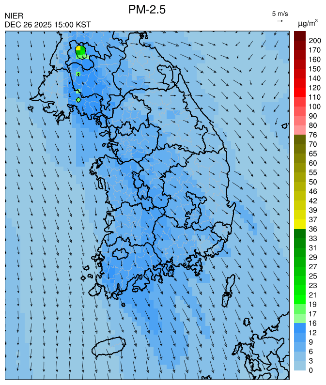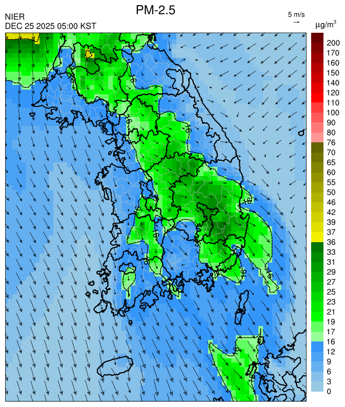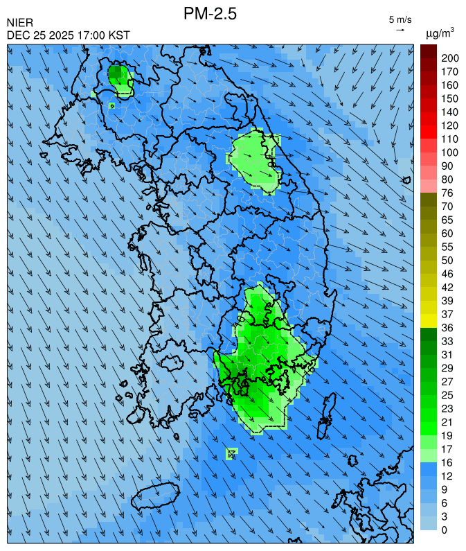 ○ 청정한 북서 기류의 유입과 낮동안 원활한 연직(상·하층) 확산으로 전 지역에서 미세먼지 농도는 일평균 '좋음'으로 예상됩니다.