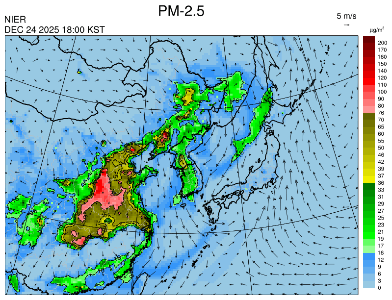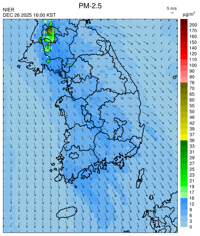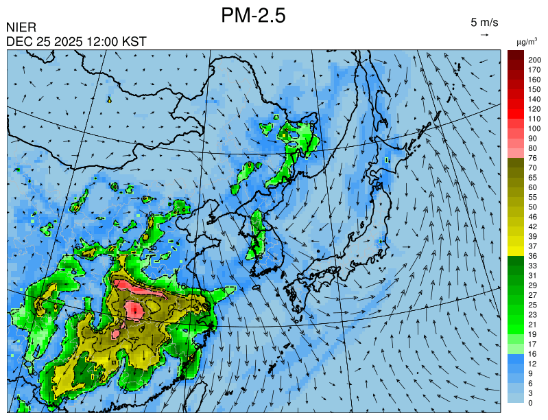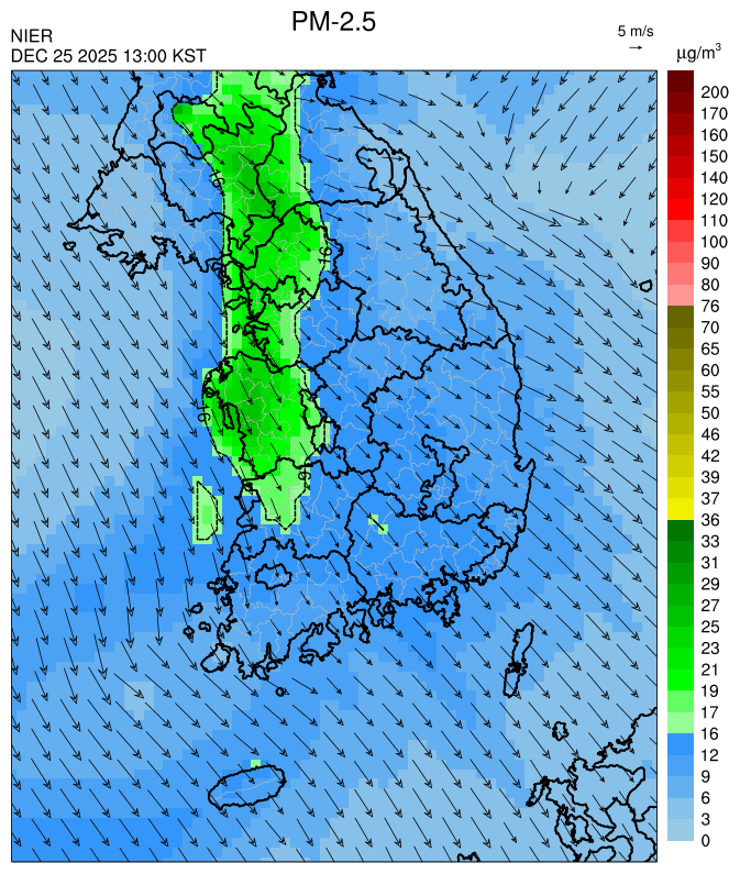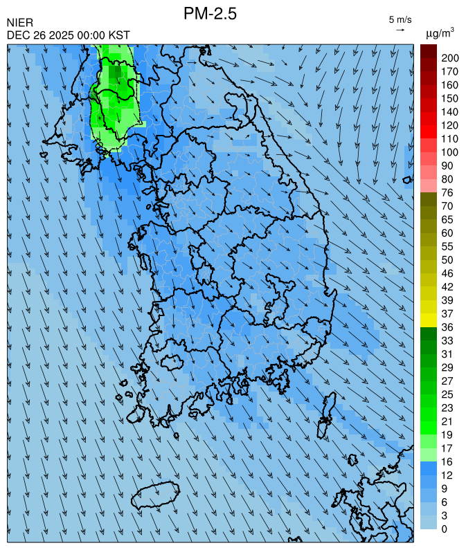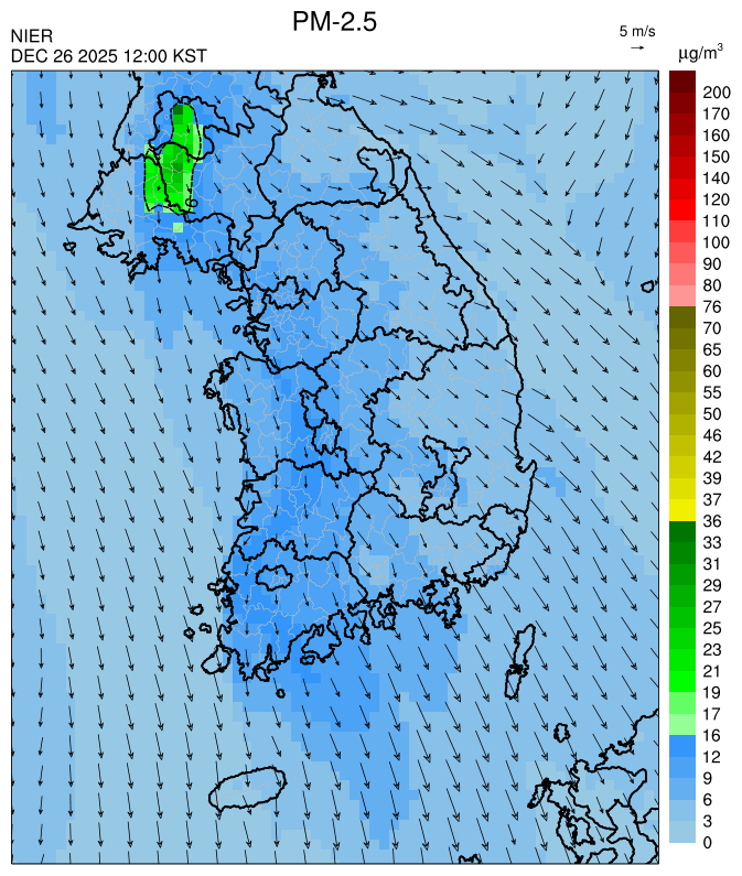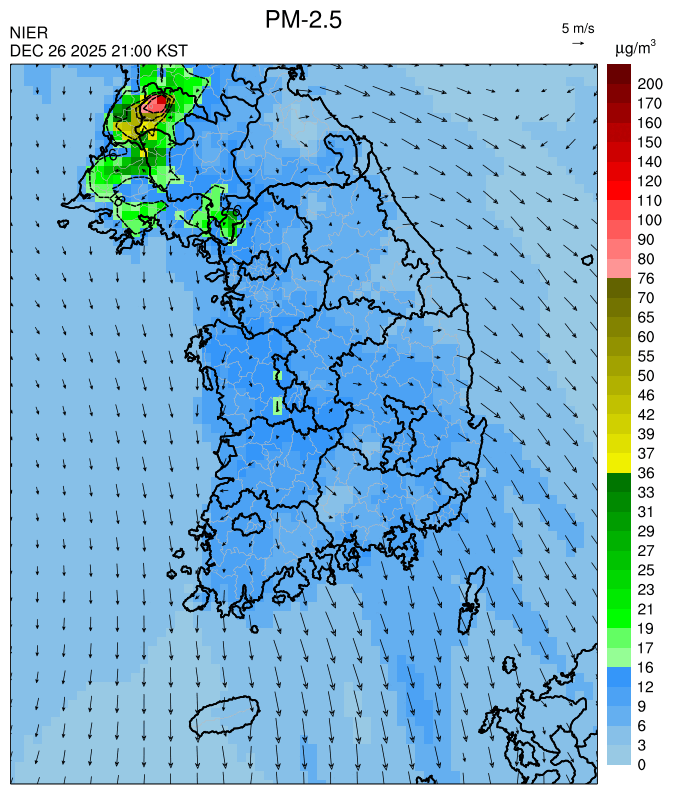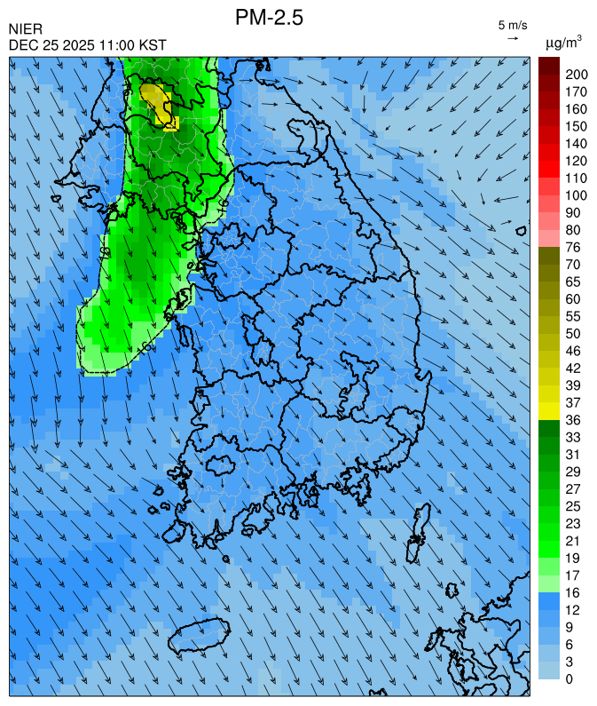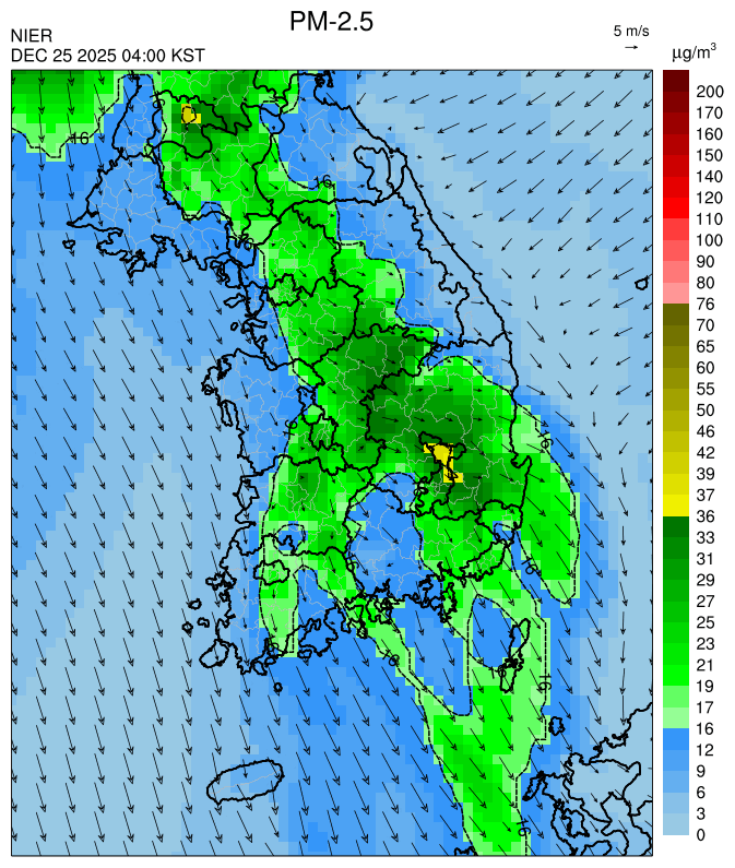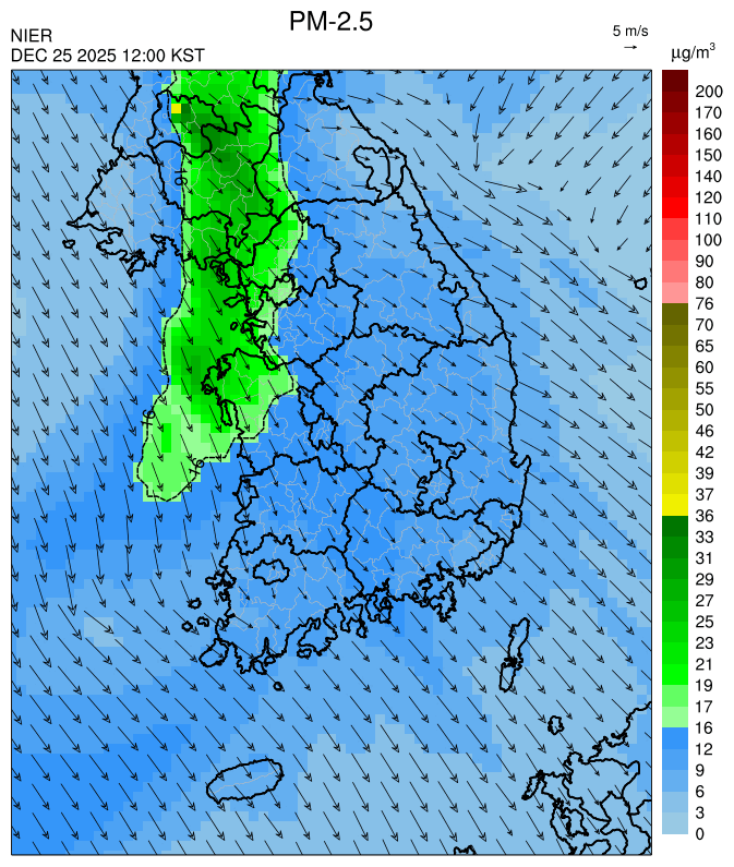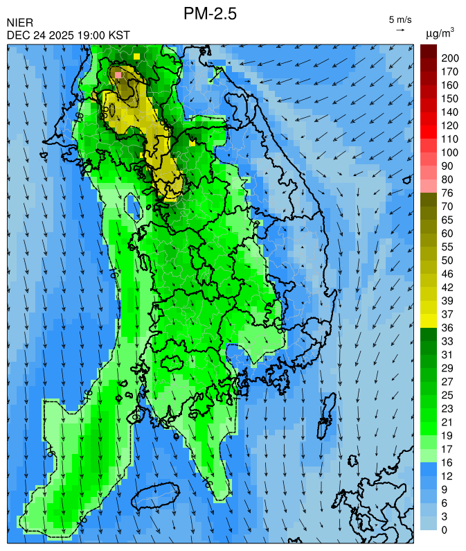○ 청정한 북서 기류의 유입과 낮동안 원활한 연직(상·하층) 확산으로 전 지역에서 미세먼지 농도는 일평균 '좋음'으로 예상됩니다.