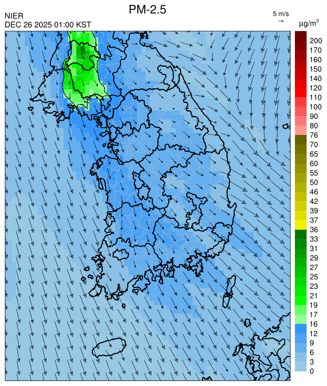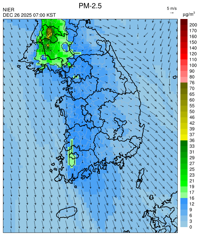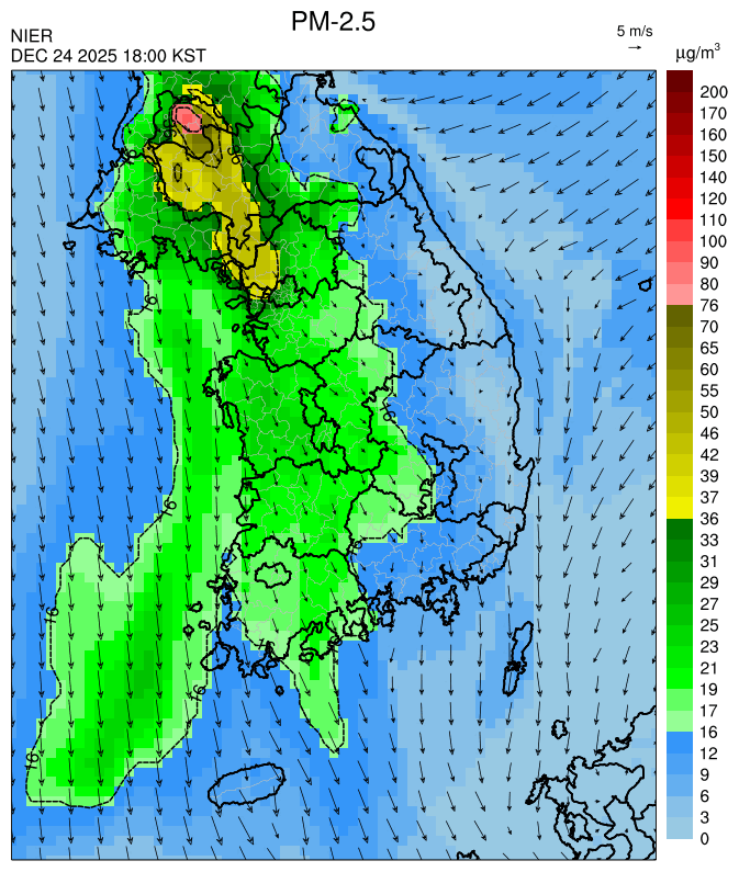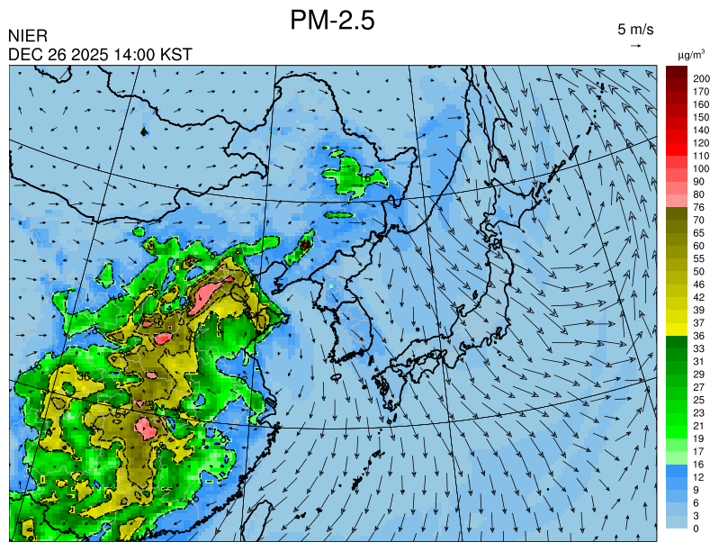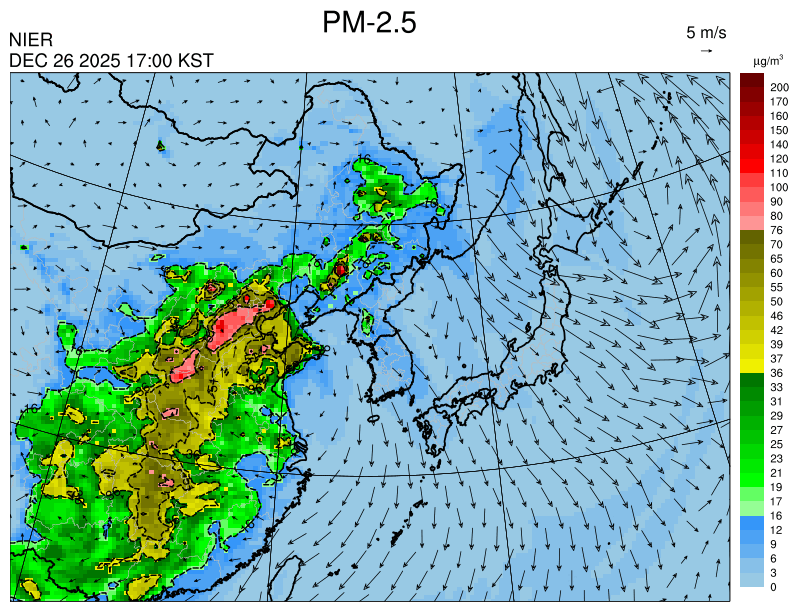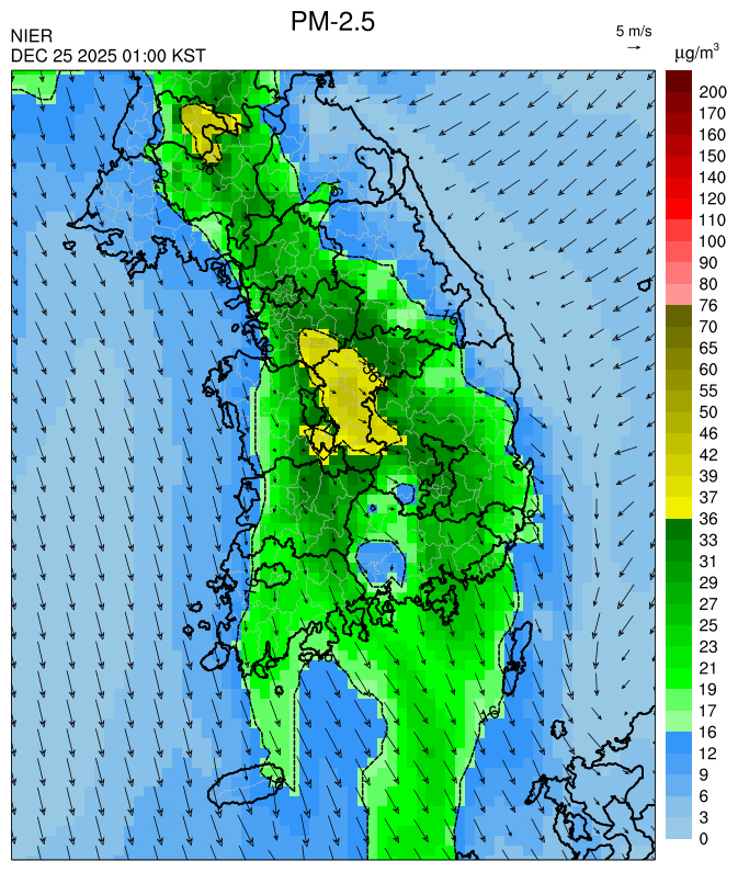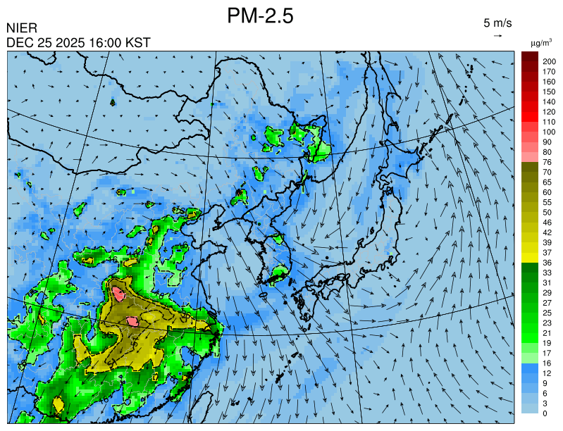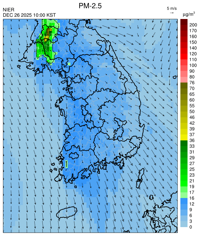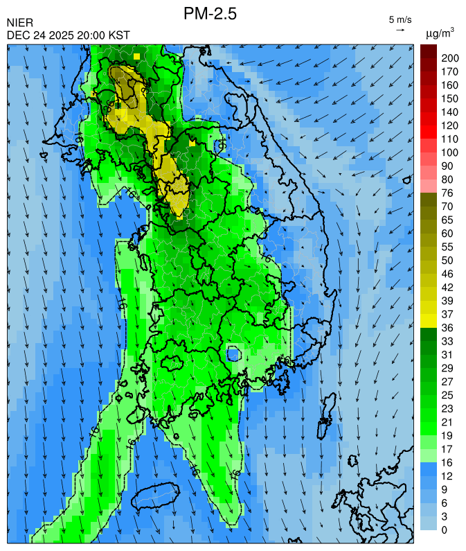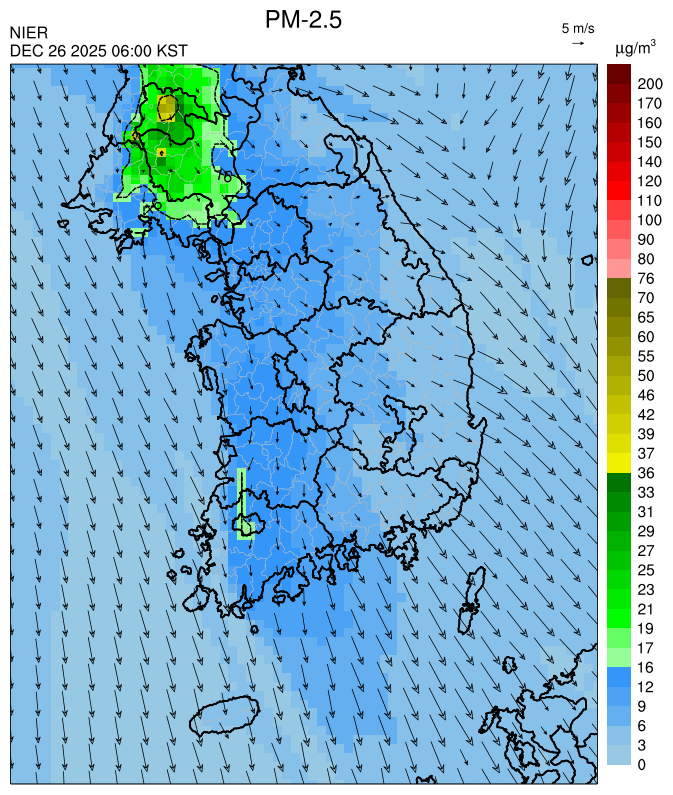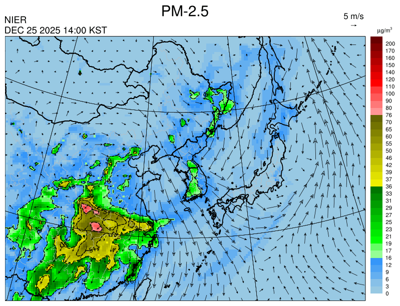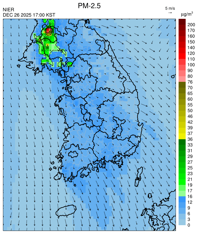○ 청정한 북서 기류의 유입과 낮동안 원활한 연직(상·하층) 확산으로 전 지역에서 미세먼지 농도는 일평균 '좋음'으로 예상됩니다.