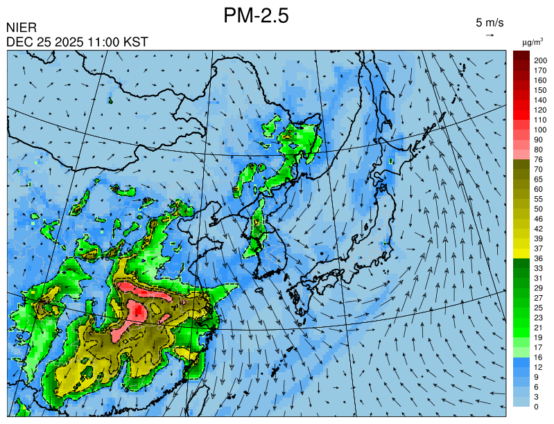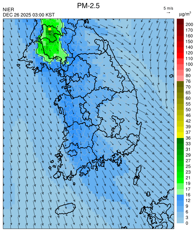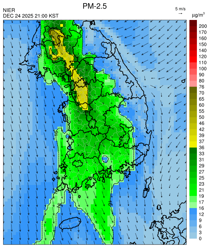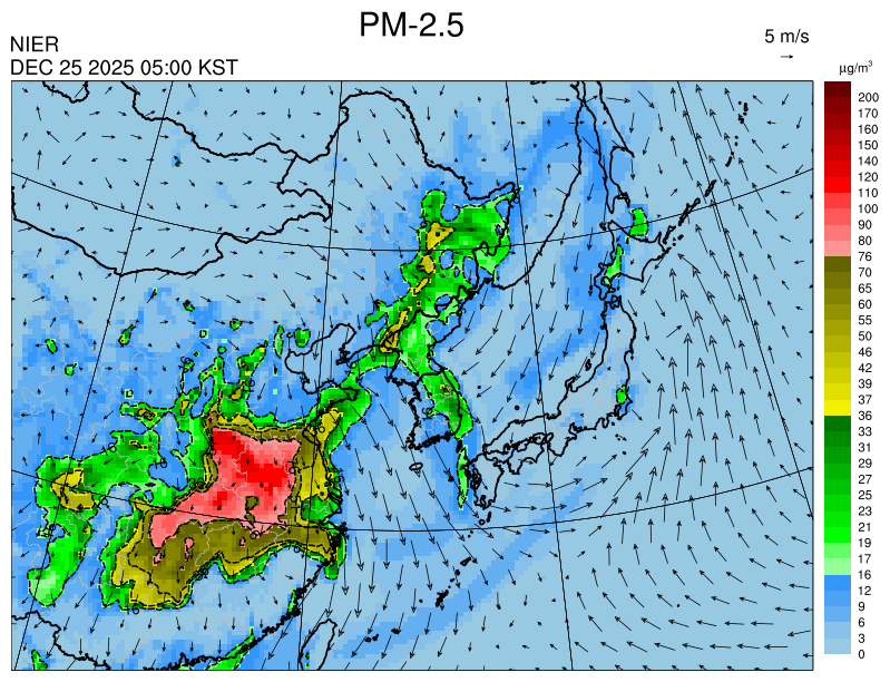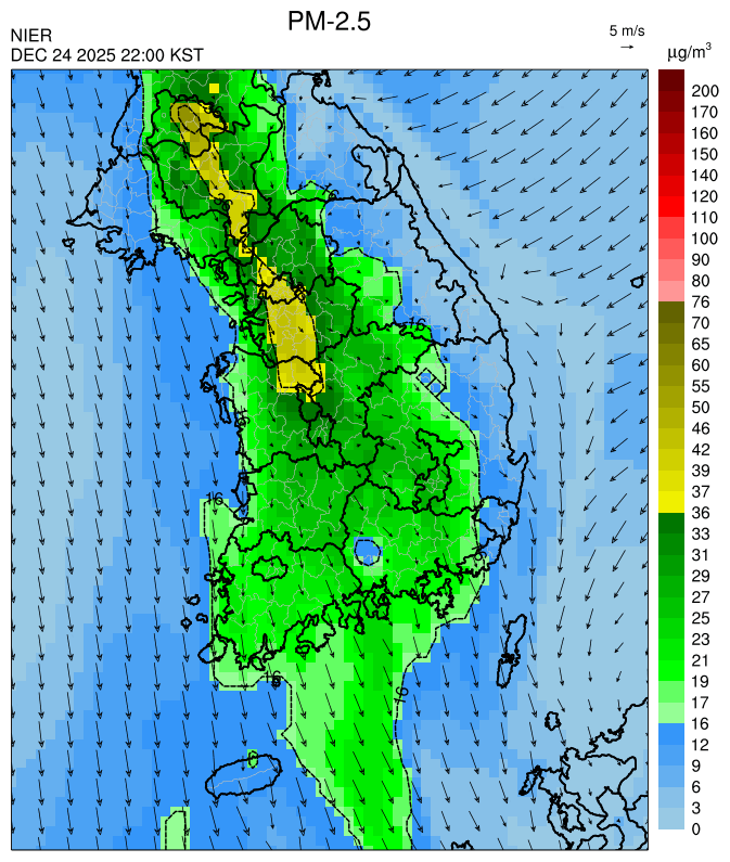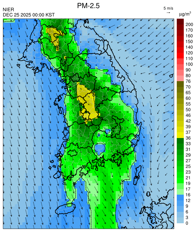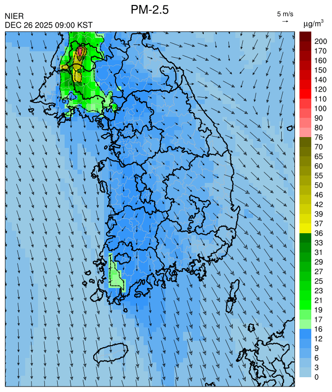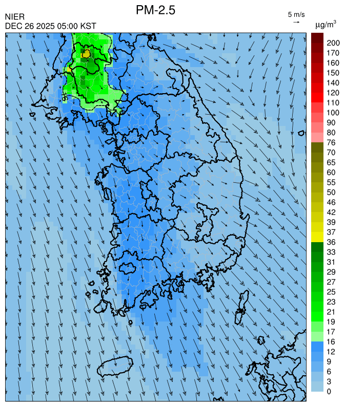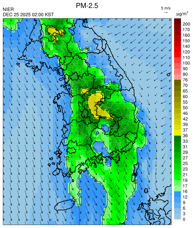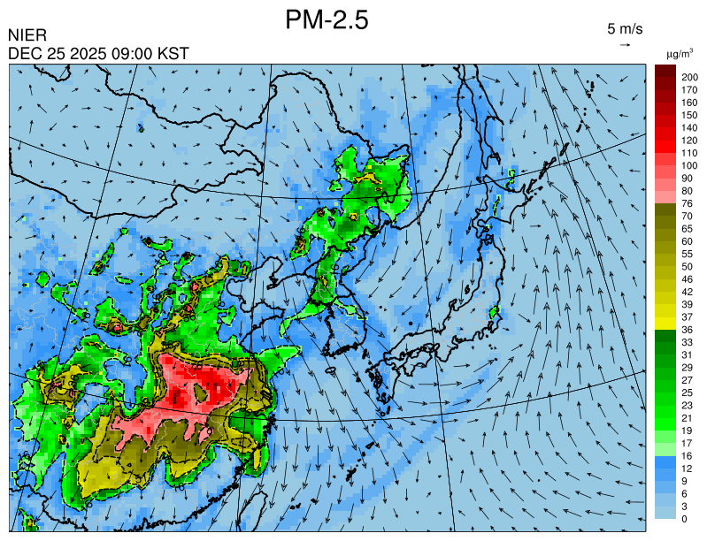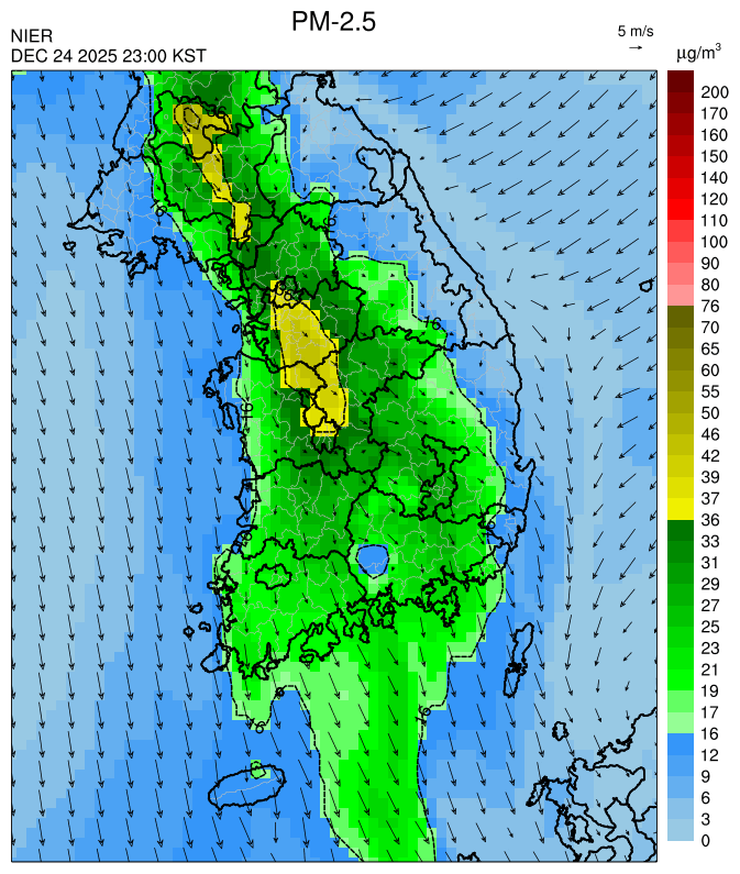 ○ 청정한 북서 기류의 유입과 낮동안 원활한 연직(상·하층) 확산으로 전 지역에서 미세먼지 농도는 일평균 '좋음'으로 예상됩니다.