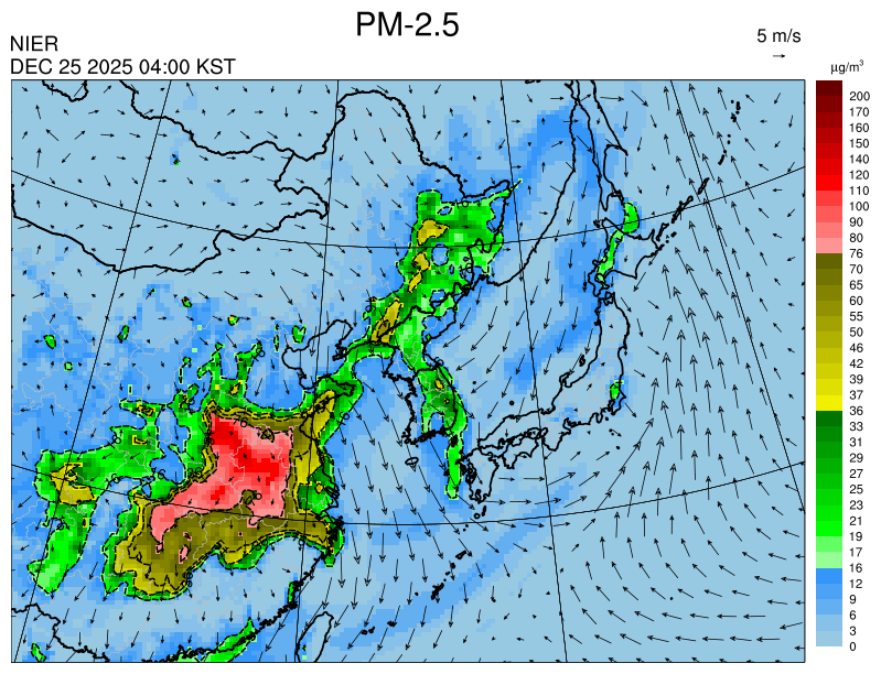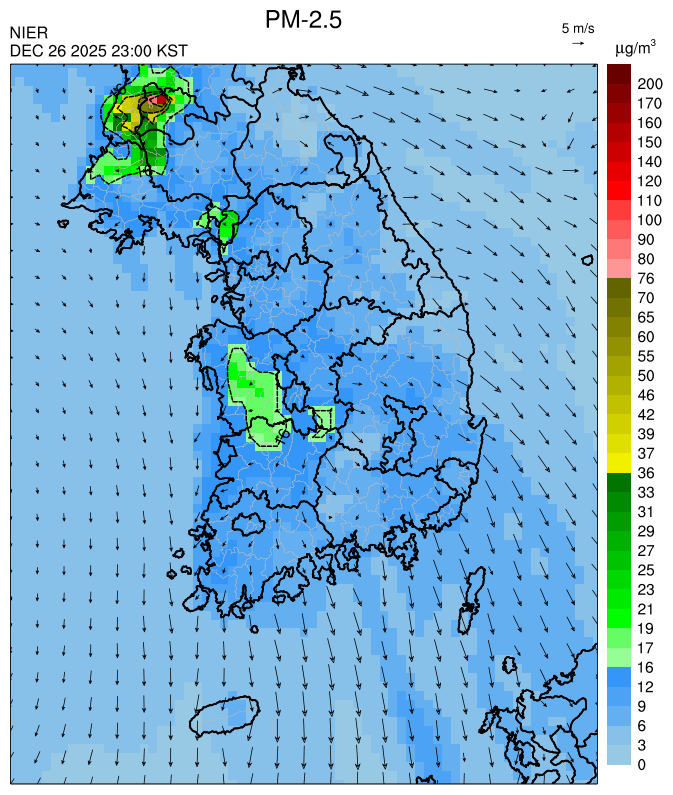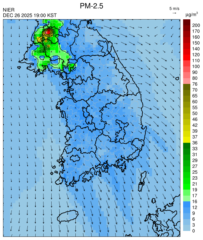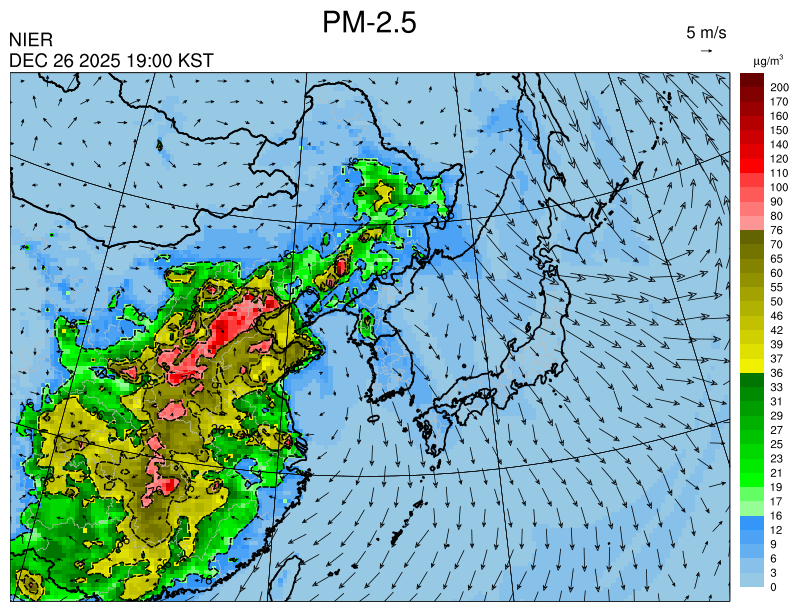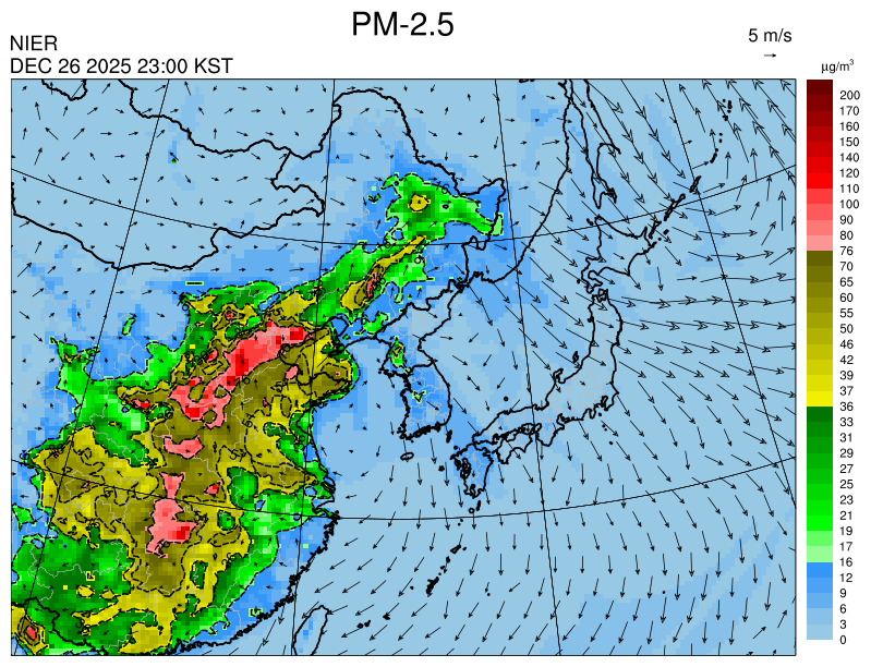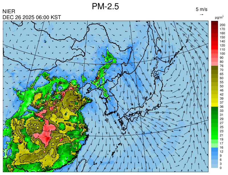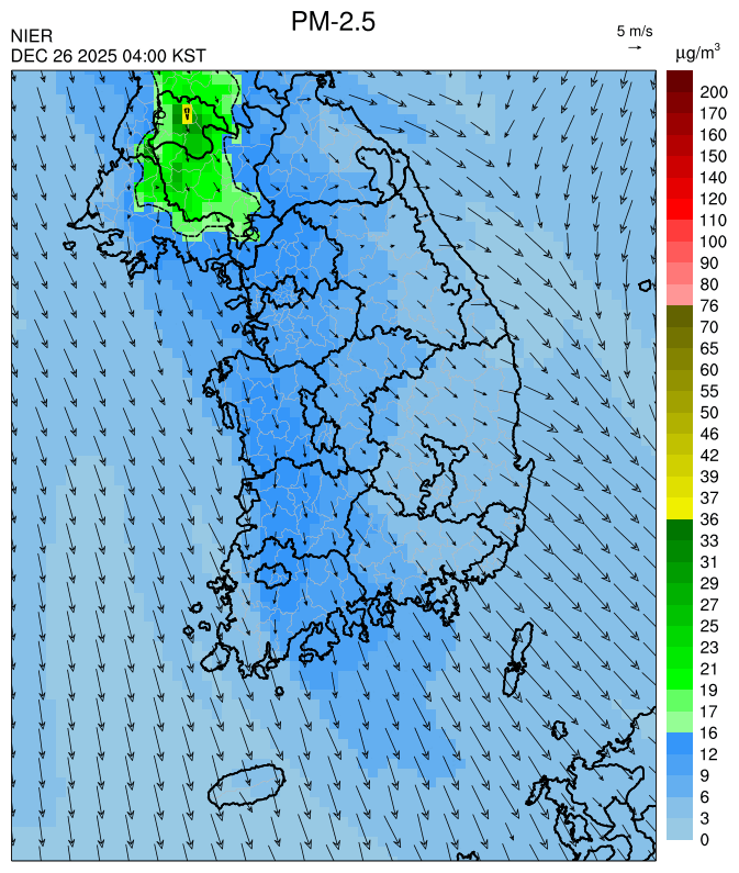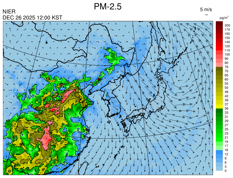 ○ [12월 27일~12월 30일] (27일) 대부분 지역은 오전까지 대기질이 청정한 가운데 오후부터 상층으로 국외 미세먼지가 유입된 후 밤에 대기 정체로 축적되어 중부 지역을 중심으로 농도가 높아지겠으나, 전 권역의 일평균은 '낮음'이 예상됩니다. (28일) 전일 유입된 국외 미세먼지와 국내 발생 미세먼지가 대기 정체로 축적되어 서울·경기북부·경기남부에서 '높음'이 예상됩니다. (29일) 일부 중부지역은 전일 미세먼지가 잔류하는 가운데 대부분 지역은 오전부터 국외 미세먼지가 유입되어 수도권·강원영서·충청권·광주·전북·대구에서 '높음'이 예상됩니다.